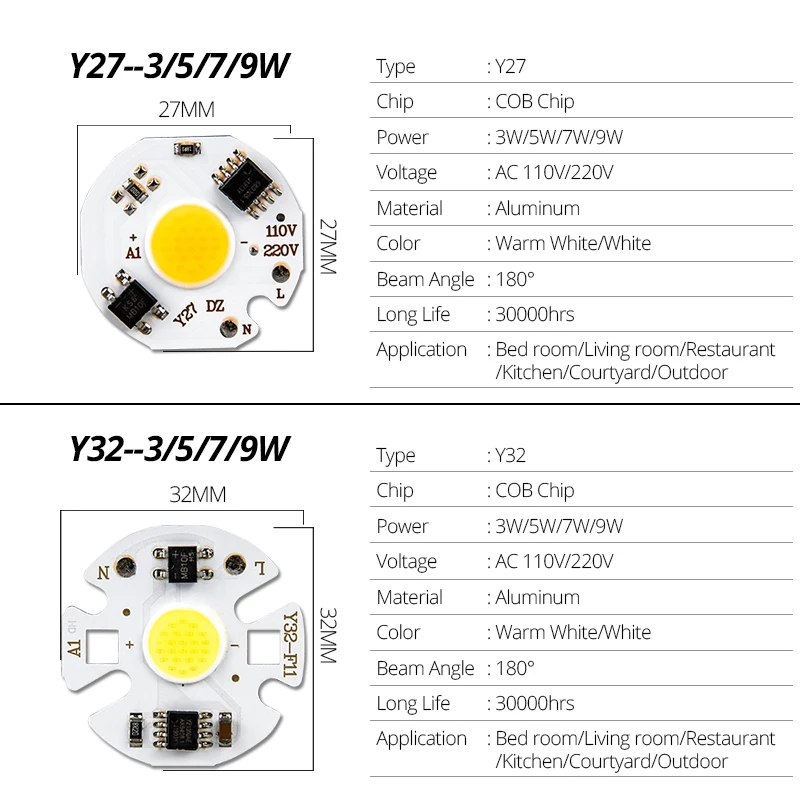 Чип-лампа COB LED 50 Вт, 30 Вт, 20 Вт, 10 Вт, 3 Вт, 5 Вт, 7 Вт, 9 Вт, светодиодный чип питания, 220 В, Диодная лампа
