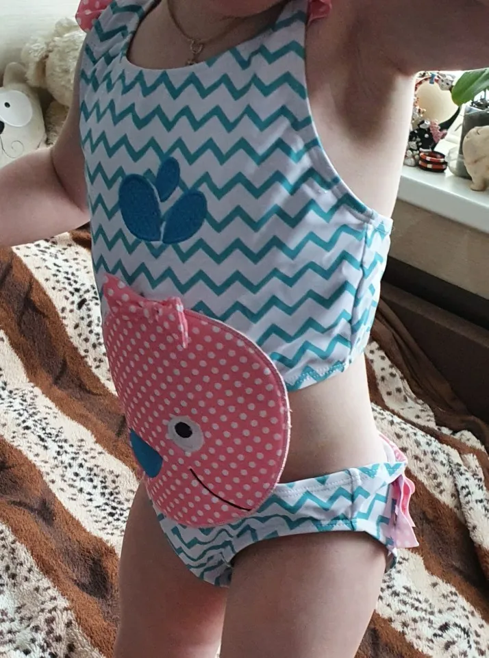 Очень хороший купальник. На ребенка 5 лет, ростом 113 см и весом 18 -19 кг размер 6т большеват. Верх существенно, да и низ весит по спинке. Сделаю защипы с обоих сторон, нормально будет. Продавец молодец, все быстро отправил, все отслеживалось, и пришло в сборной посылке, которую доставил курьер за 2,5 недели в Ленинградскую область.