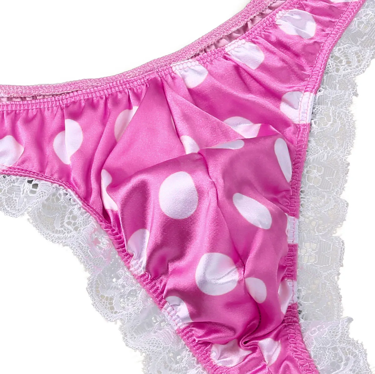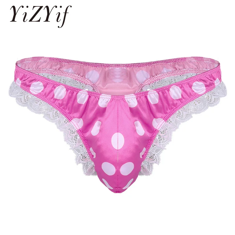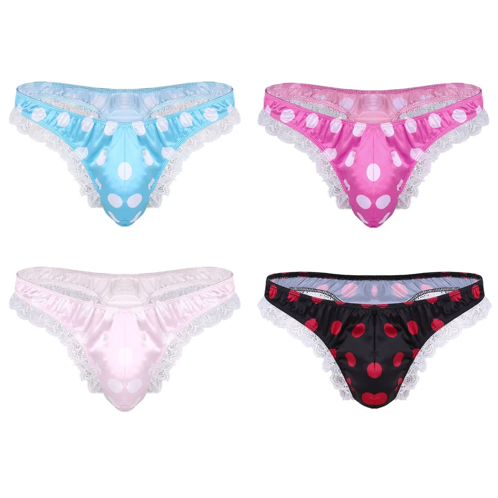 Трусики-бикини Jockstrap мужские, стринги, нижнее белье, блестящее нижнее белье с низкой посадкой, с оборками, кружевные в горошек, пикантное нижнее белье для мужчин