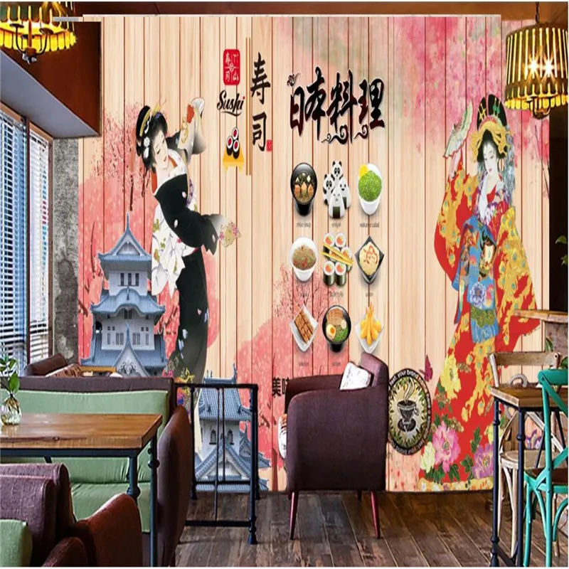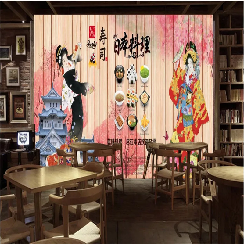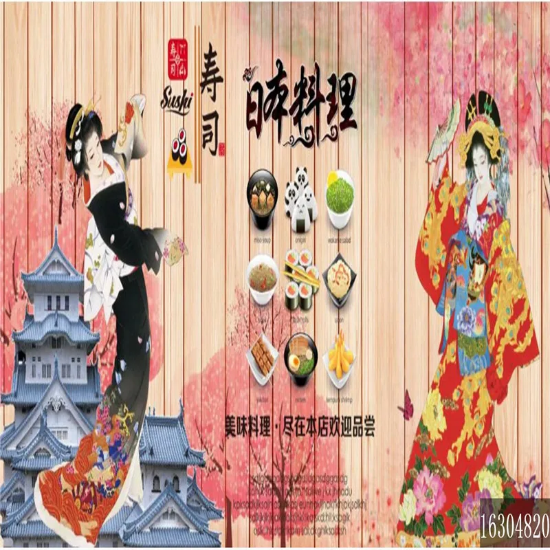 Ручная роспись Япония Знаменитые Достопримечательности настенная бумага 3D кимоно красота японская кухня суши Ресторан промышленный Декор настенная бумага