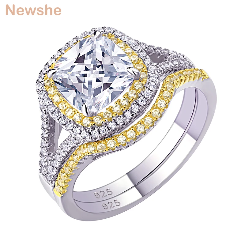 Женское Обручальное Кольцо Newshe, кольцо из стерлингового серебра 925 пробы с ореолом, желтое золото, огранка 1.8Ct, AAAAA CZ