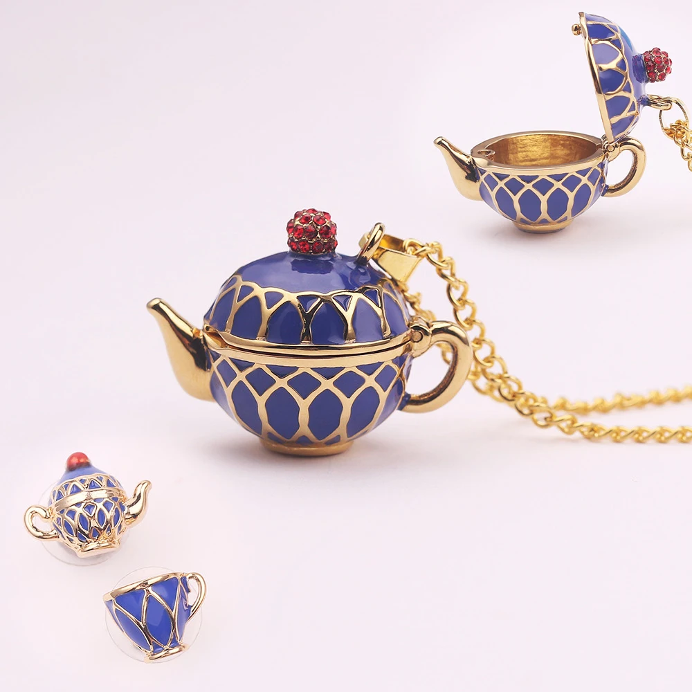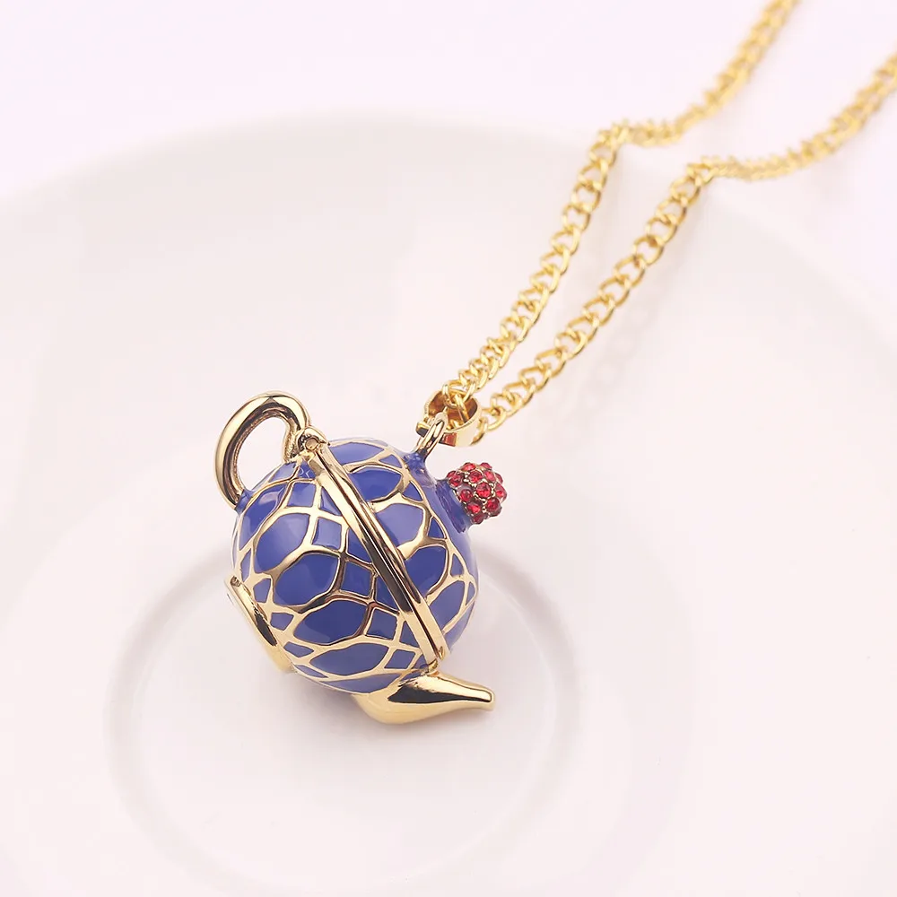 Ручной эмалированный чайник, подвеска, цепочка, колье, модное ювелирное изделие, Bijoux Femme Bijuteria, подарок для женщин, чайник с кристаллами