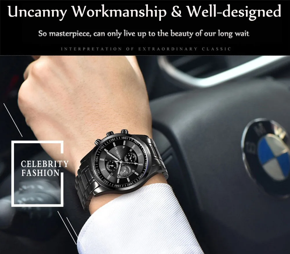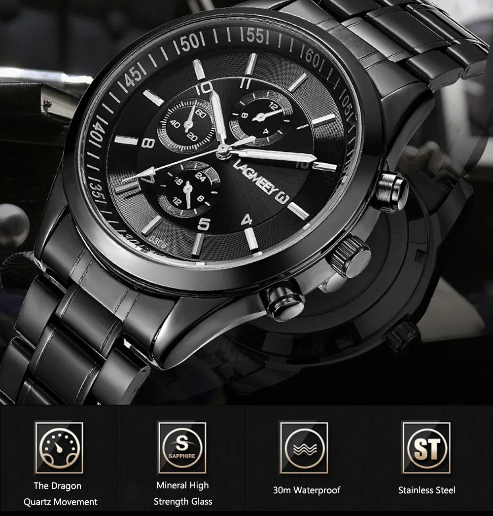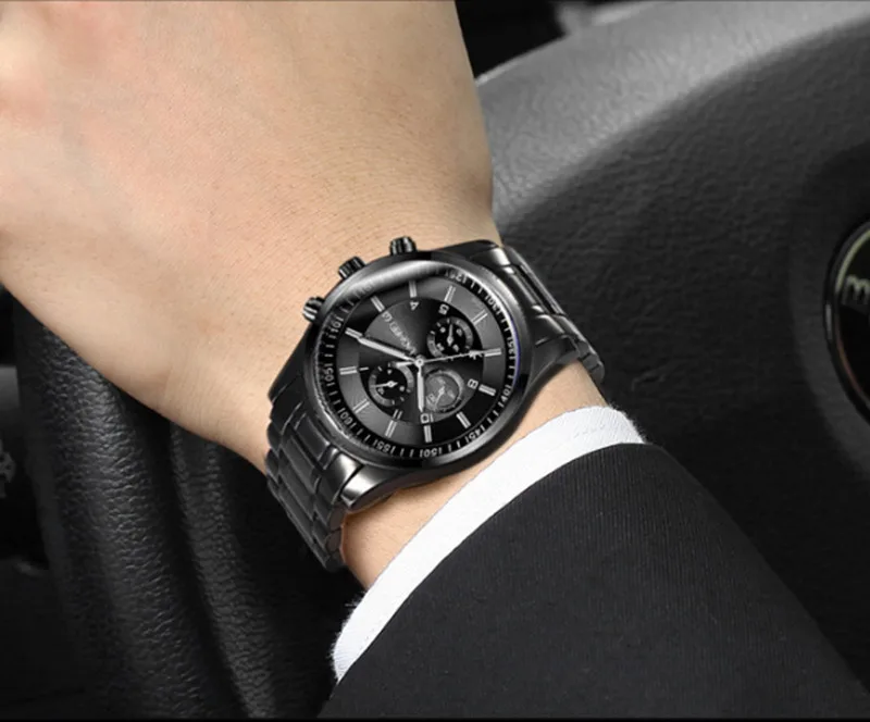 Мужские часы Роскошные полностью стальные часы Мужские часы мужские спортивные бизнес Erkek Kol Saati платье наручные часы хронограф элегантные