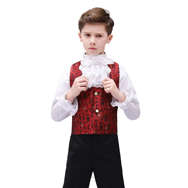Король принц Ренессанс средневековый мужской маскарадный костюм для мальчиков пальто + брюки + галстук + жилет полный комплект размера плюс XS-XL