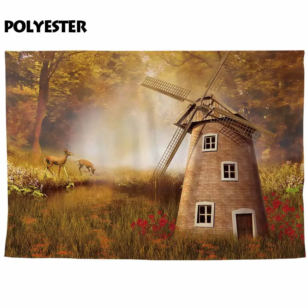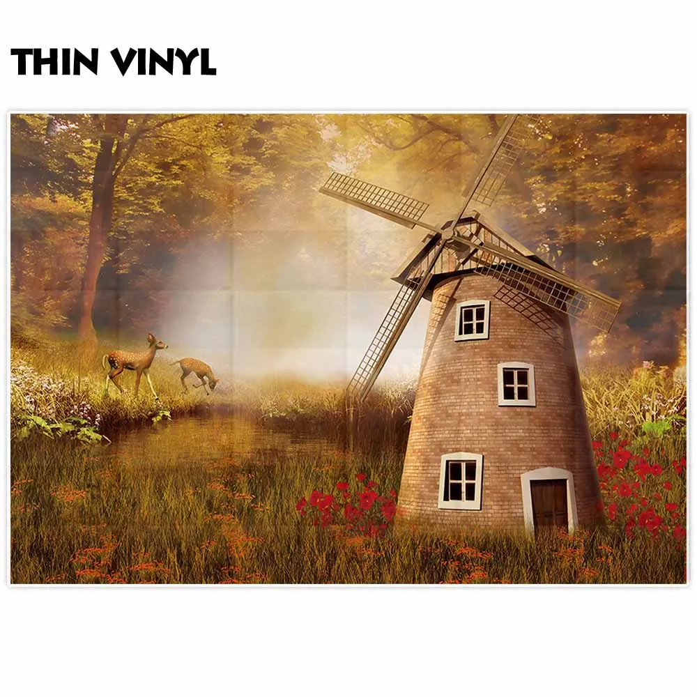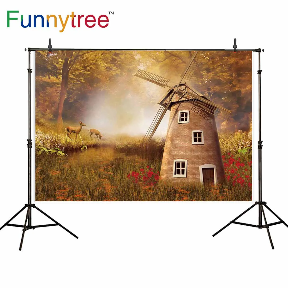 Фон для фотосъемки Funnytree с изображением ветряной мельницы цветов ландшафта окна двери осенней детской фантазии фотография