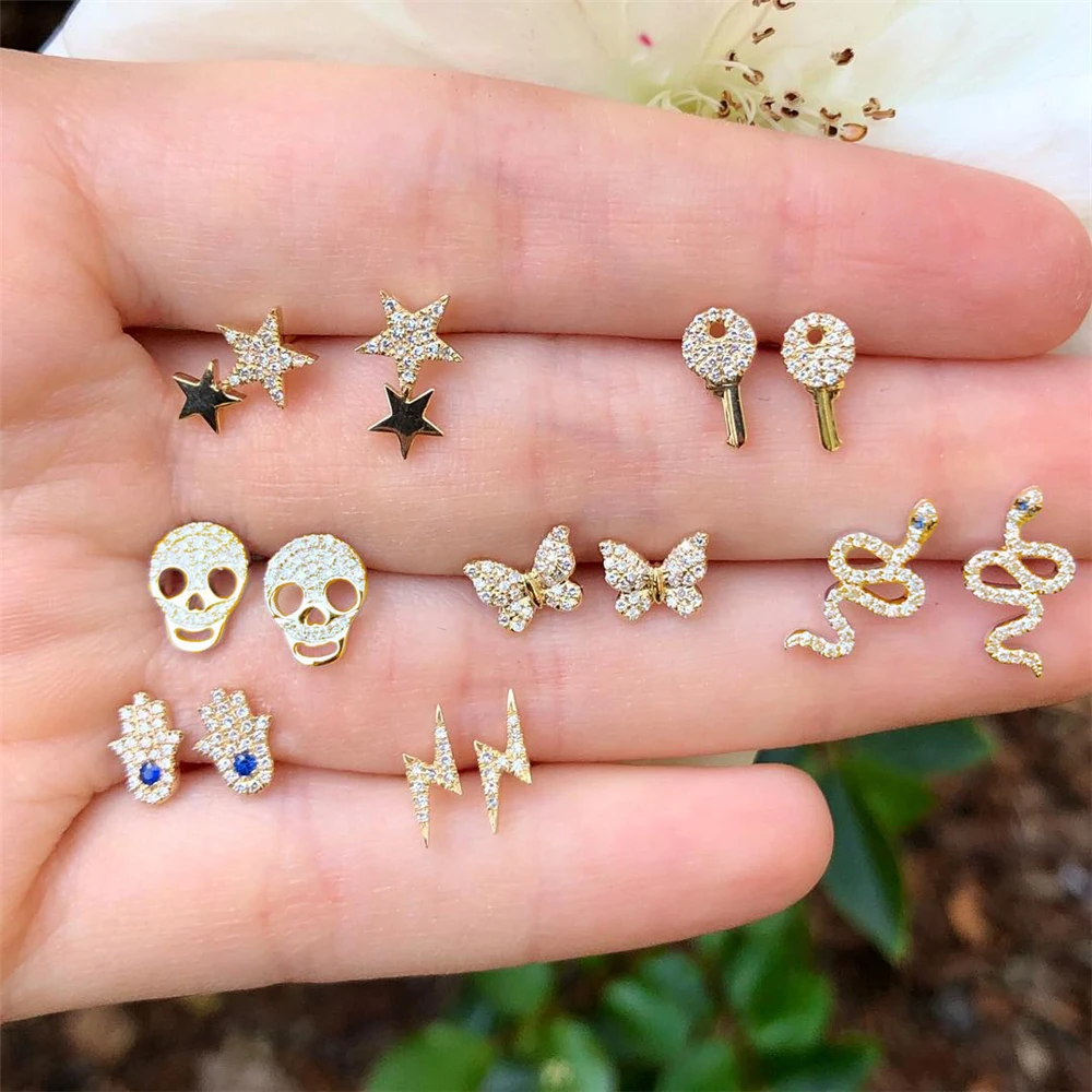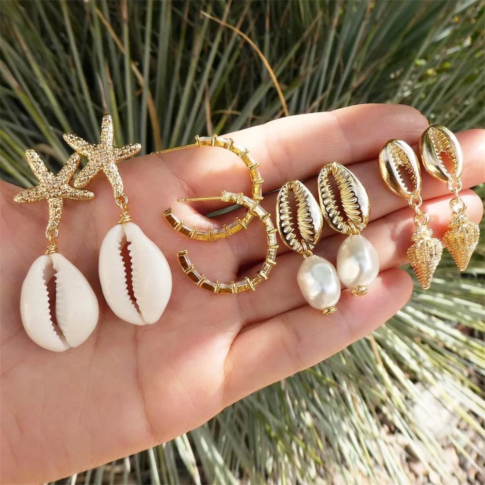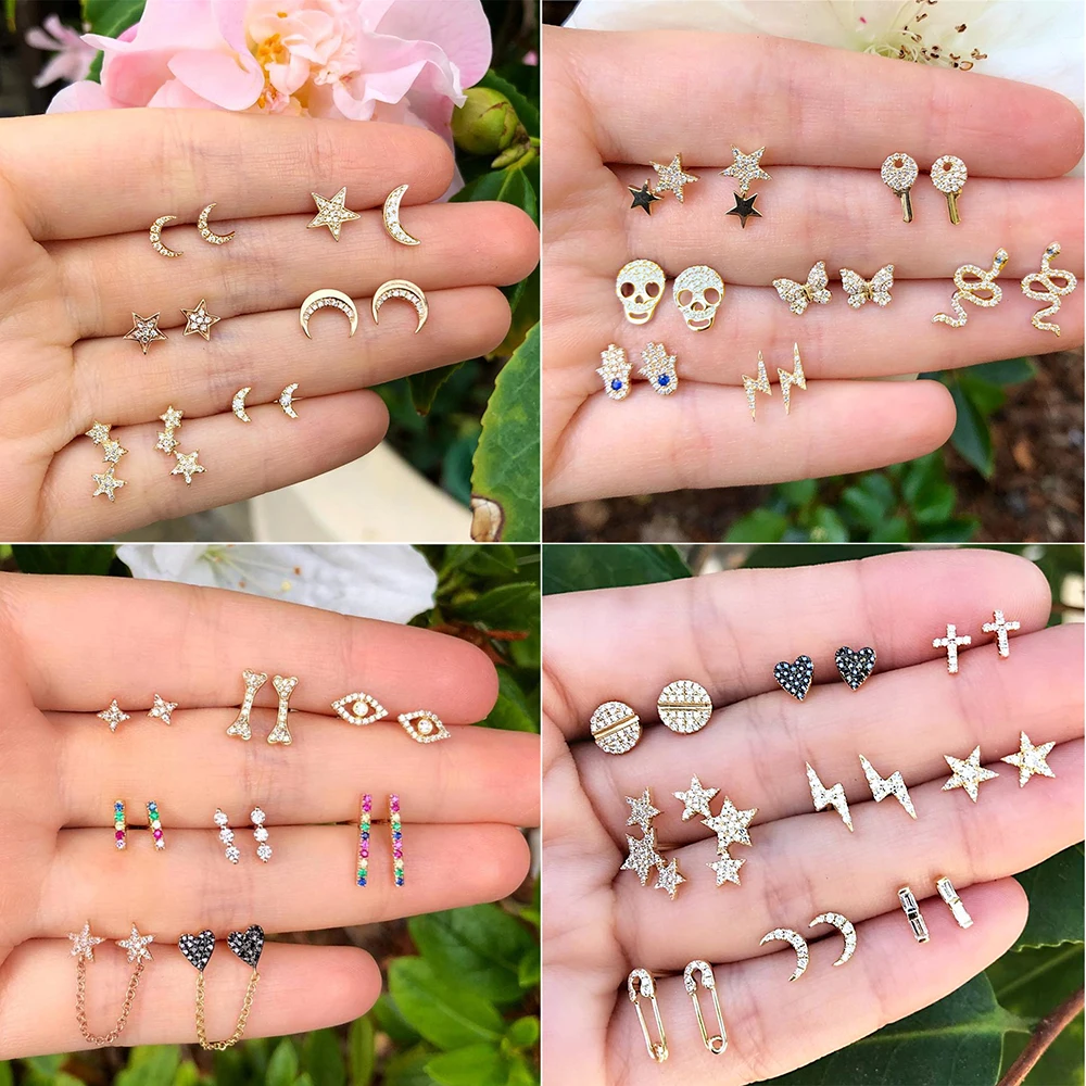 С цветочным рисунком в винтажном стиле в виде ракушки Луна, Звезды, серьги-гвоздики с кристаллами Комплект Женщины Девушки Мода маленькие серьги женские подарочные украшения для ушей 2020