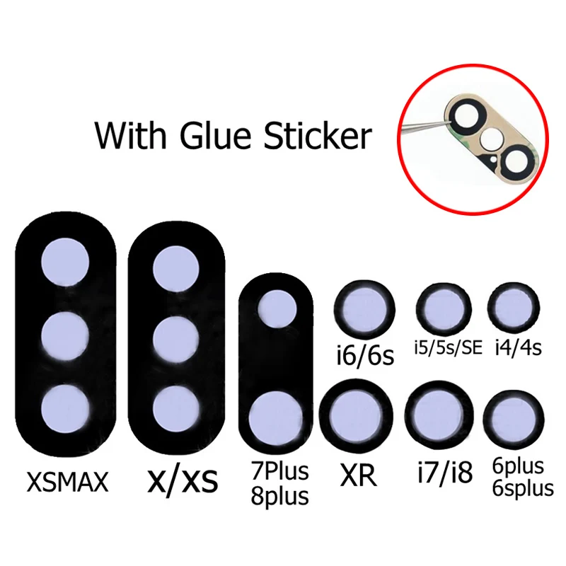 Задняя Основная камера объектив для iphone 4 4s 5 5s se 6 6s 7 8 plus x xr xsmax задняя камера стекло с помощью клейкой ленты 3М наклейка Запчасти для авто