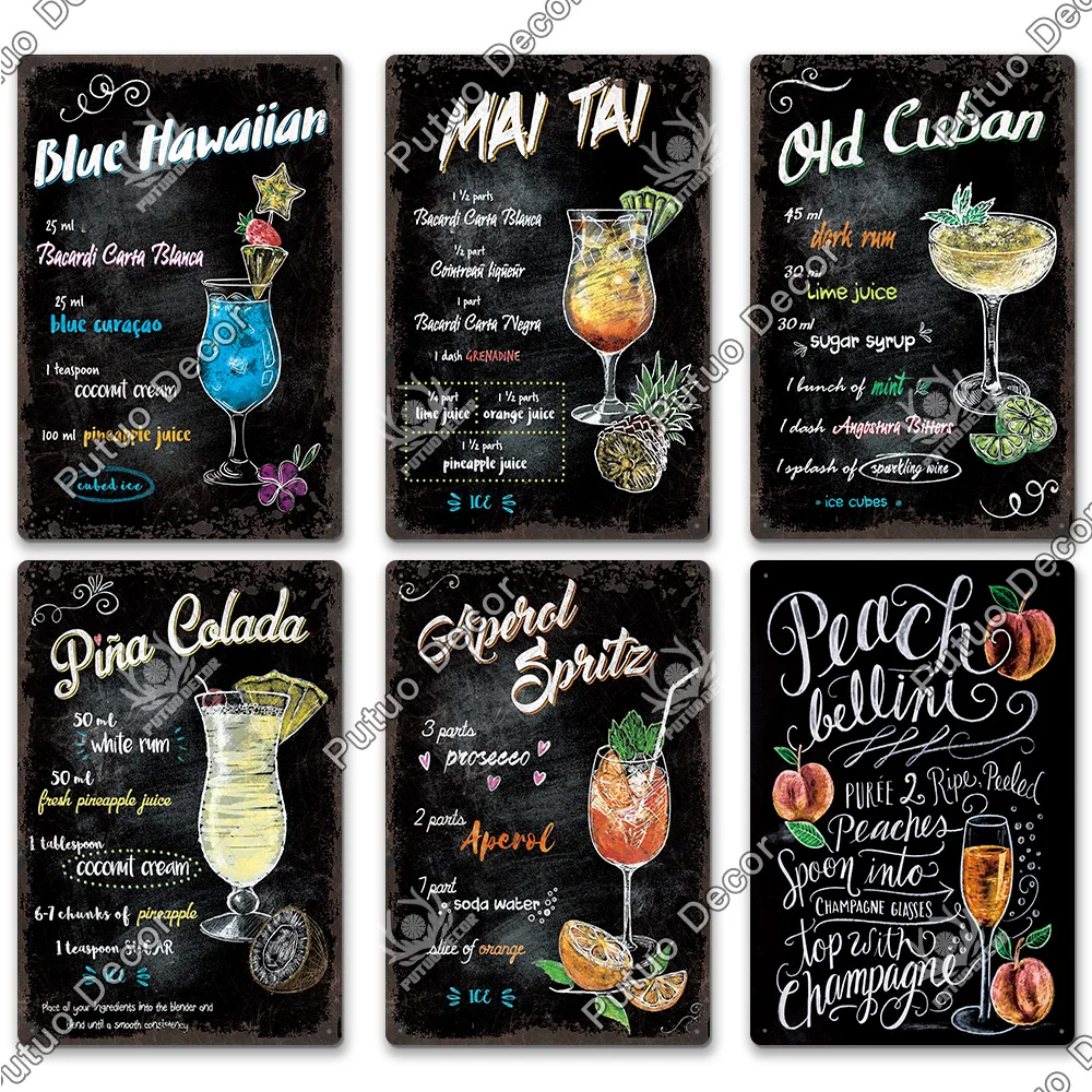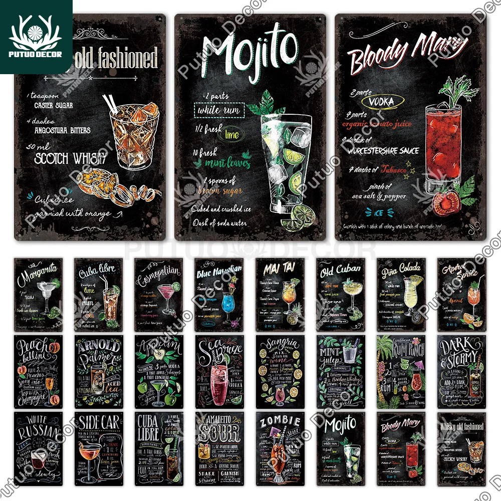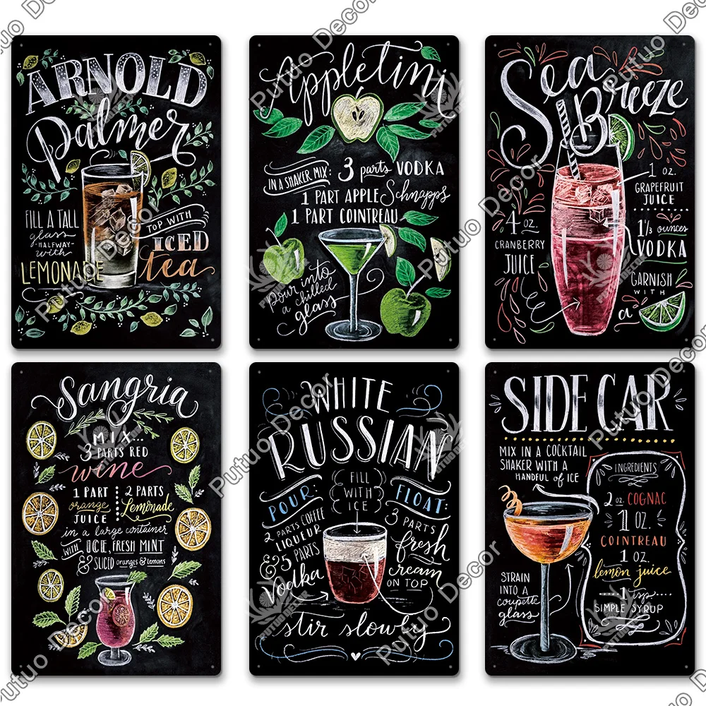 Жестяная винтажная вывеска для коктейлей, металлическая табличка, м...