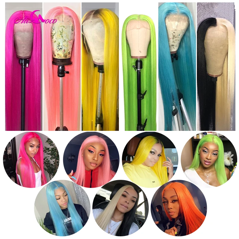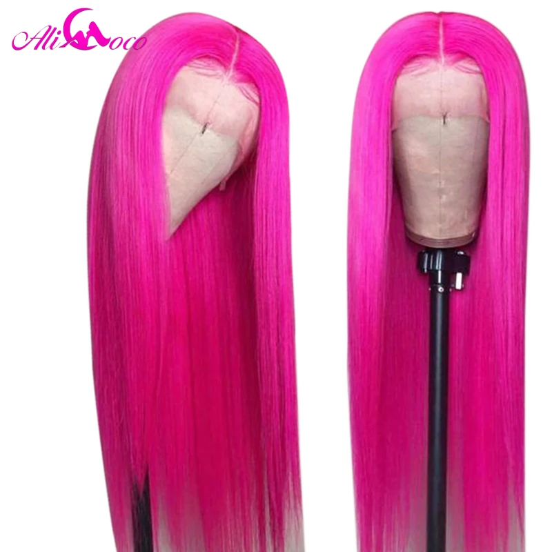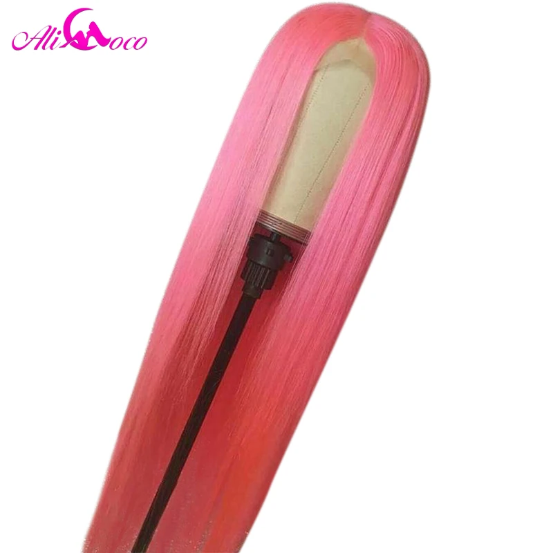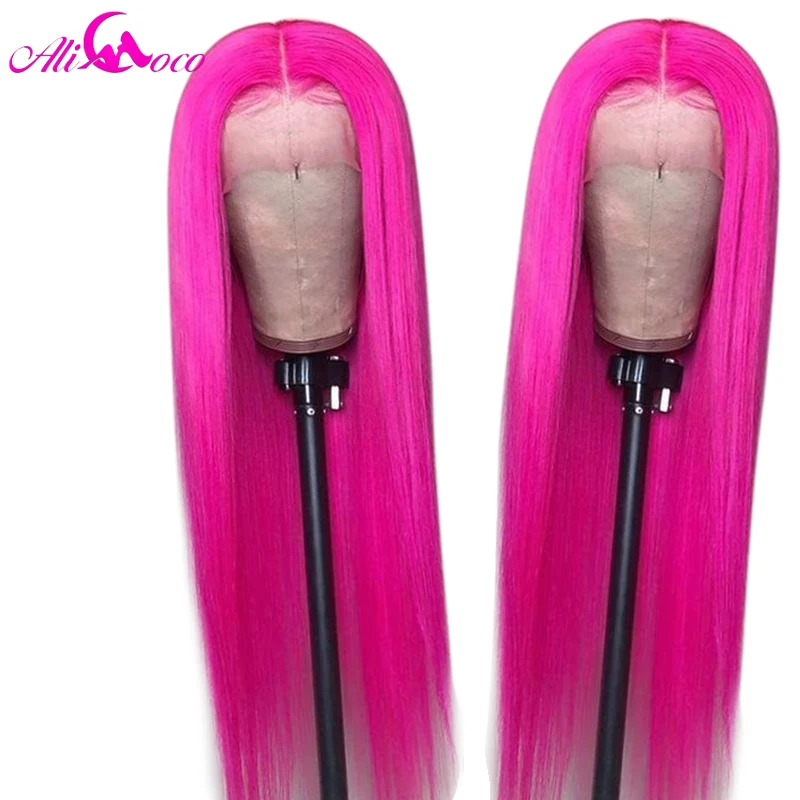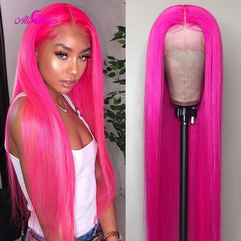 Парик Ali Coco из натуральных человеческих волос, 13x4, розовый, бразильский, с прямыми натуральными волосами, зеленый, красный, синий, фиолетовый, с эффектом омбре, парик для женщин