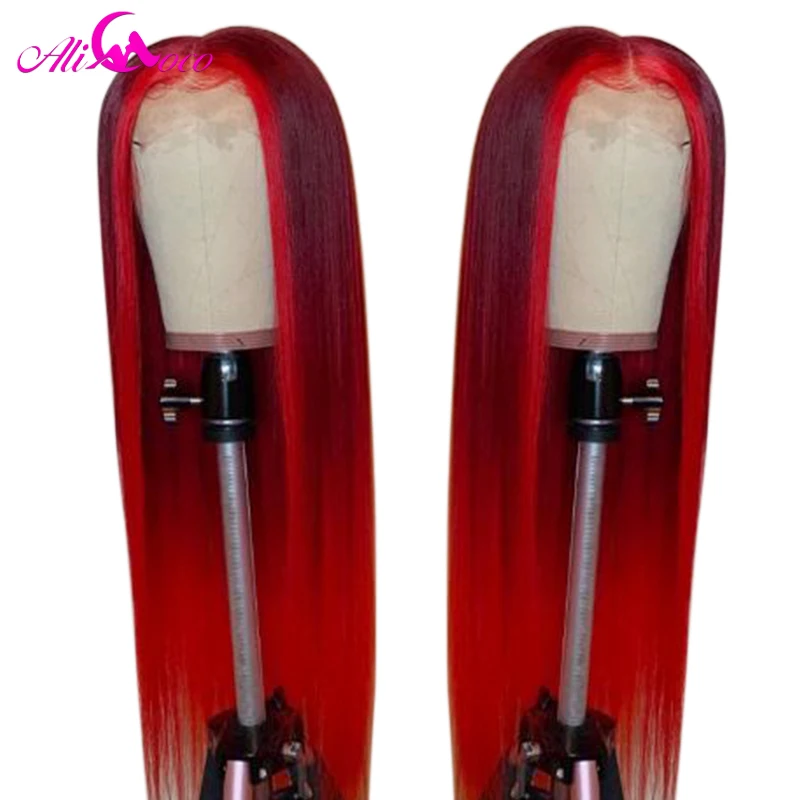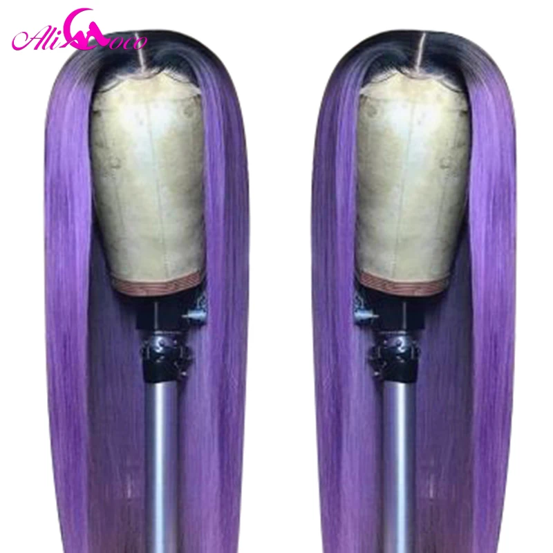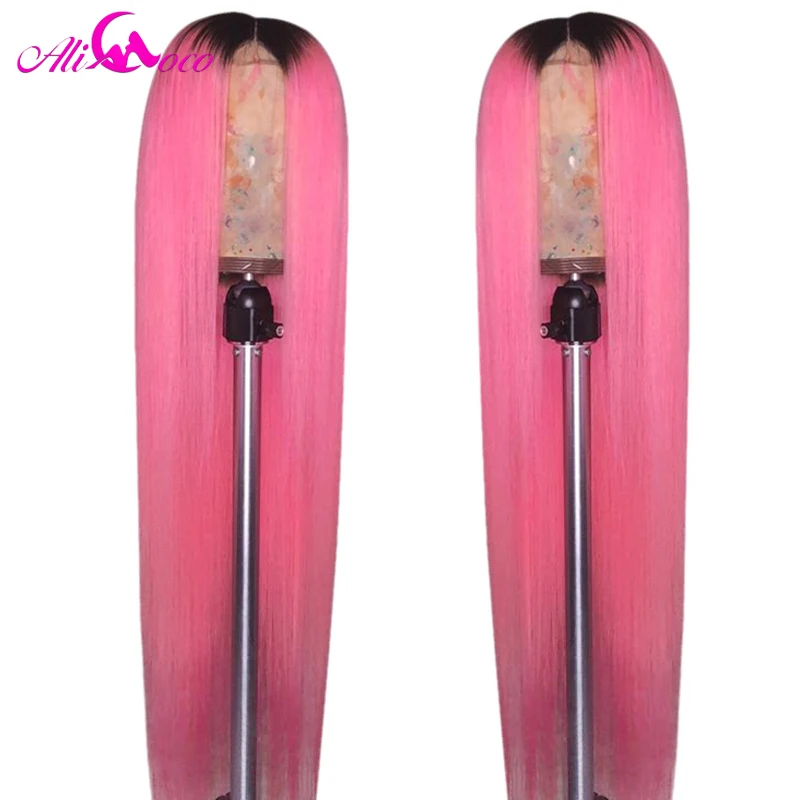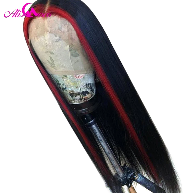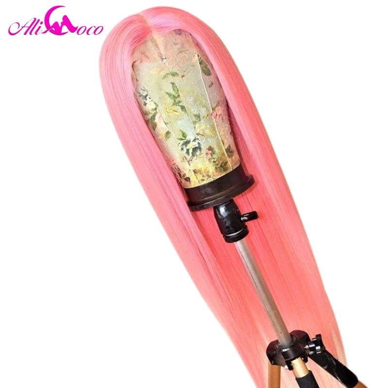 Парик Ali Coco из натуральных человеческих волос, 13x4, розовый, бразильский, с прямыми натуральными волосами, зеленый, красный, синий, фиолетовый, с эффектом омбре, парик для женщин