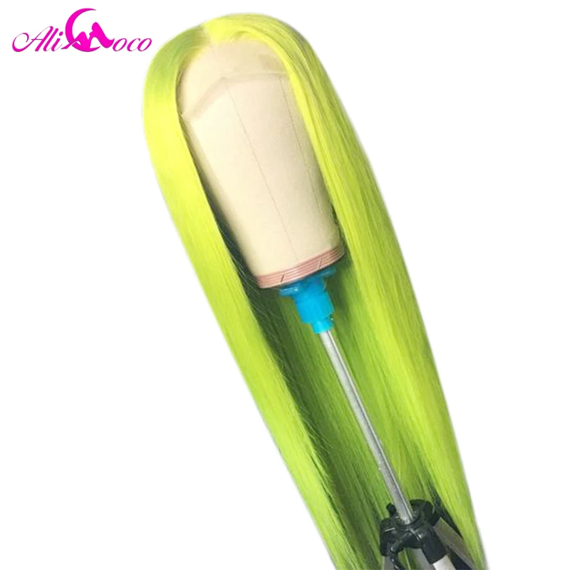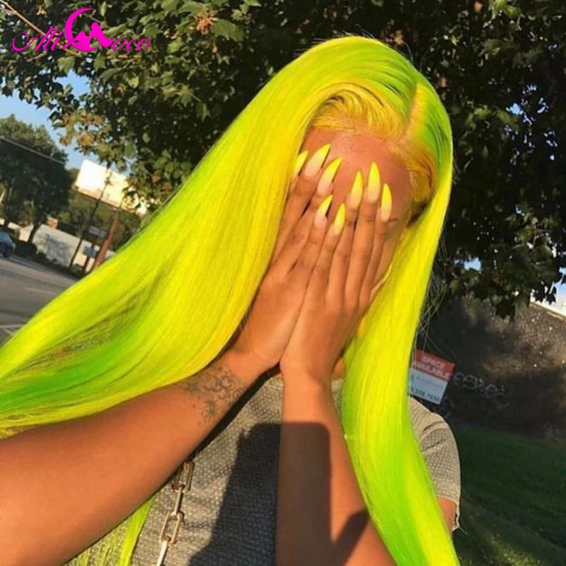 Али Коко 150% зеленый парик из человеческих волос бразильский Remy прямой желтый кружевной передний парик Розовый Красный светильник синий фиолетовый Омбре парики для женщин