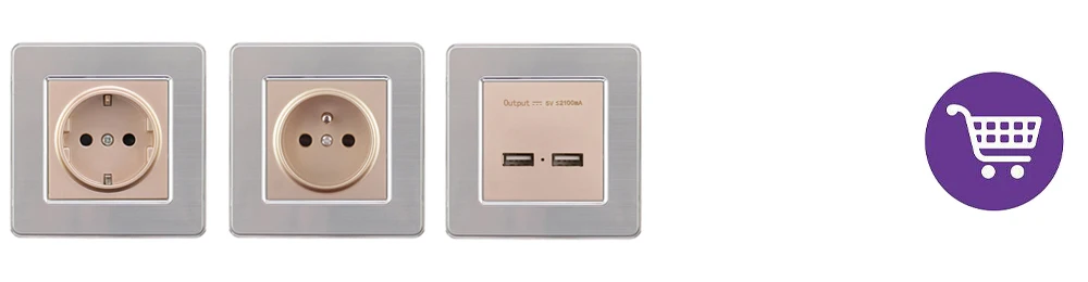 Электрическая розетка с двумя USB-портами и алюминиевой панелью