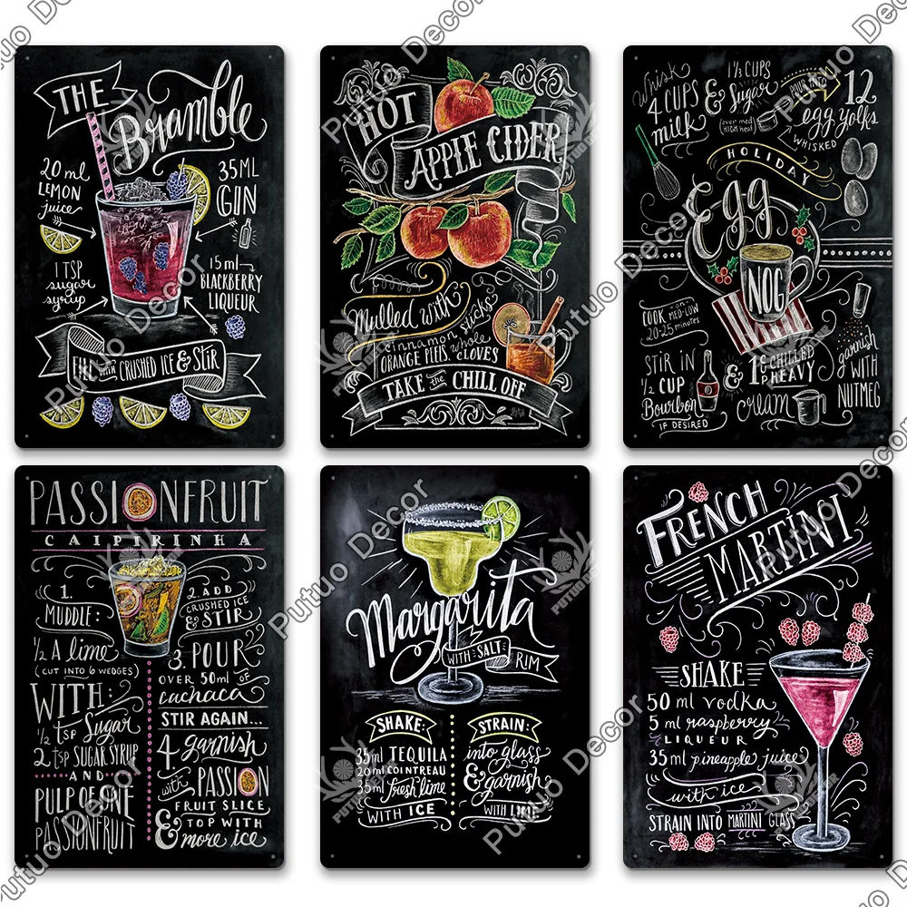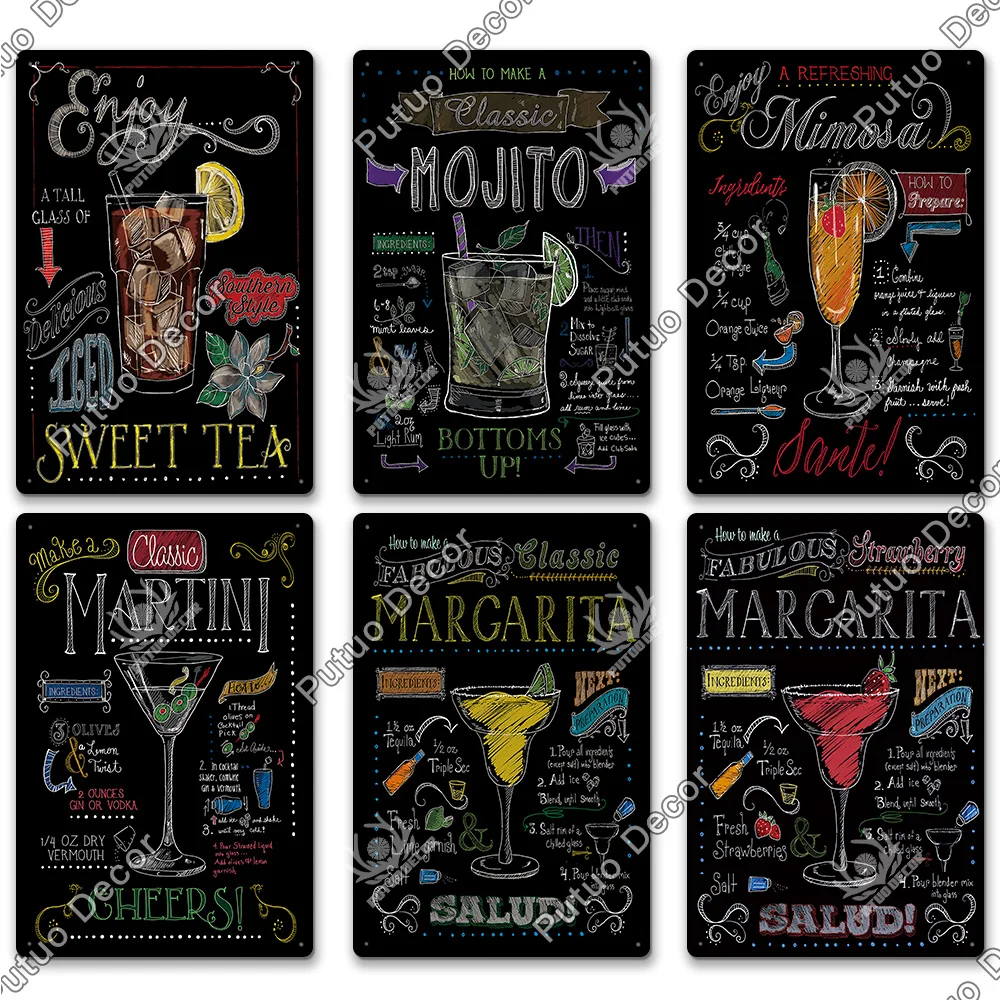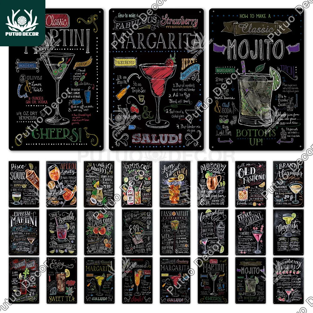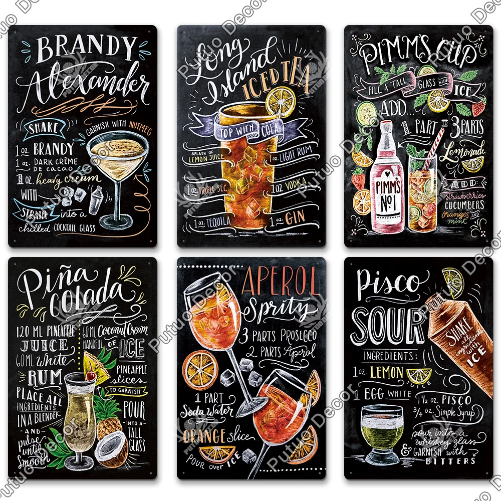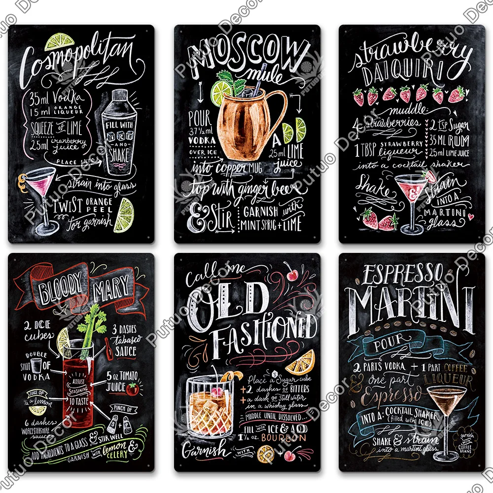 Металлическая вывеска для коктейлей, металлический винтажный Настен...