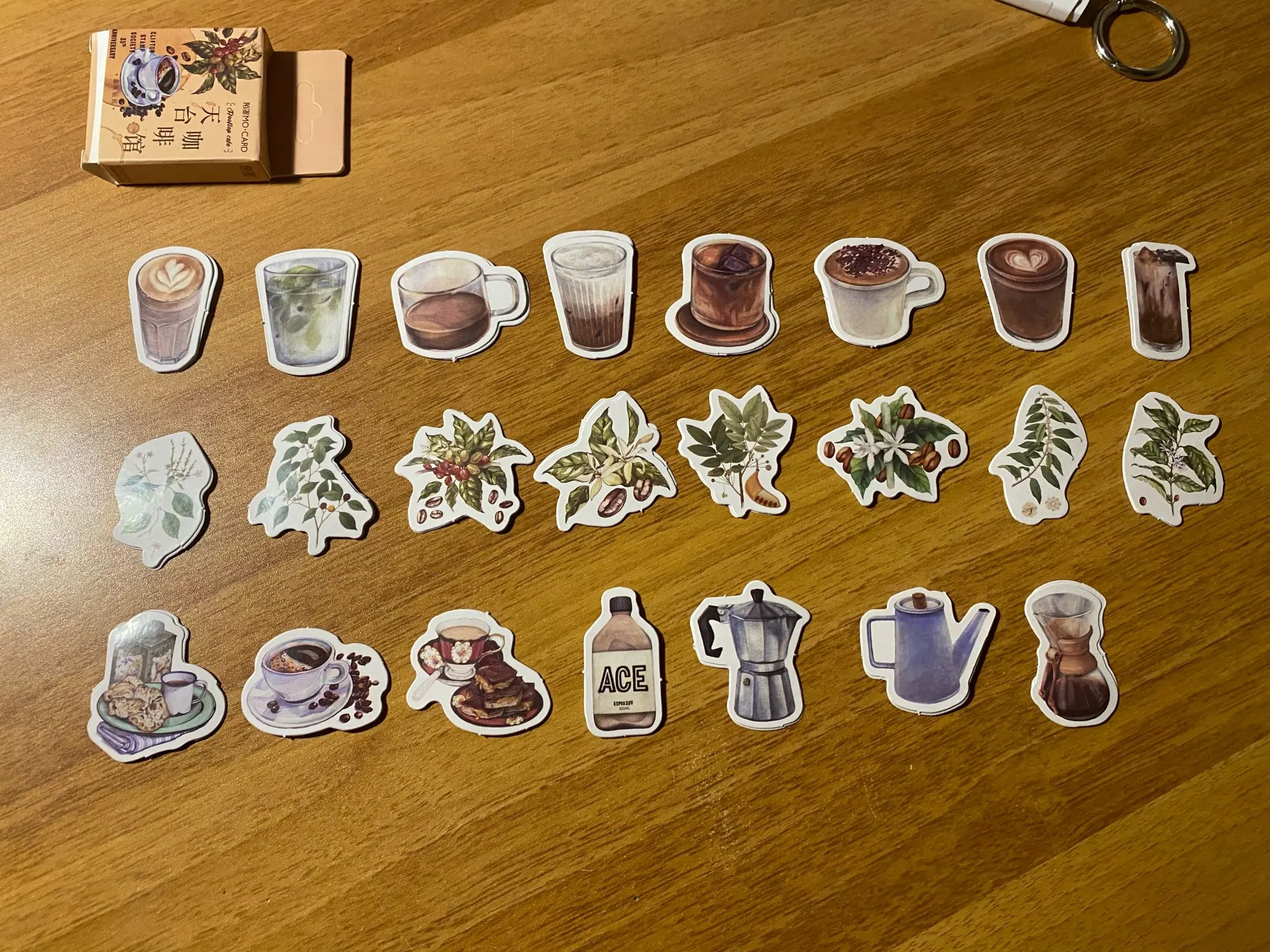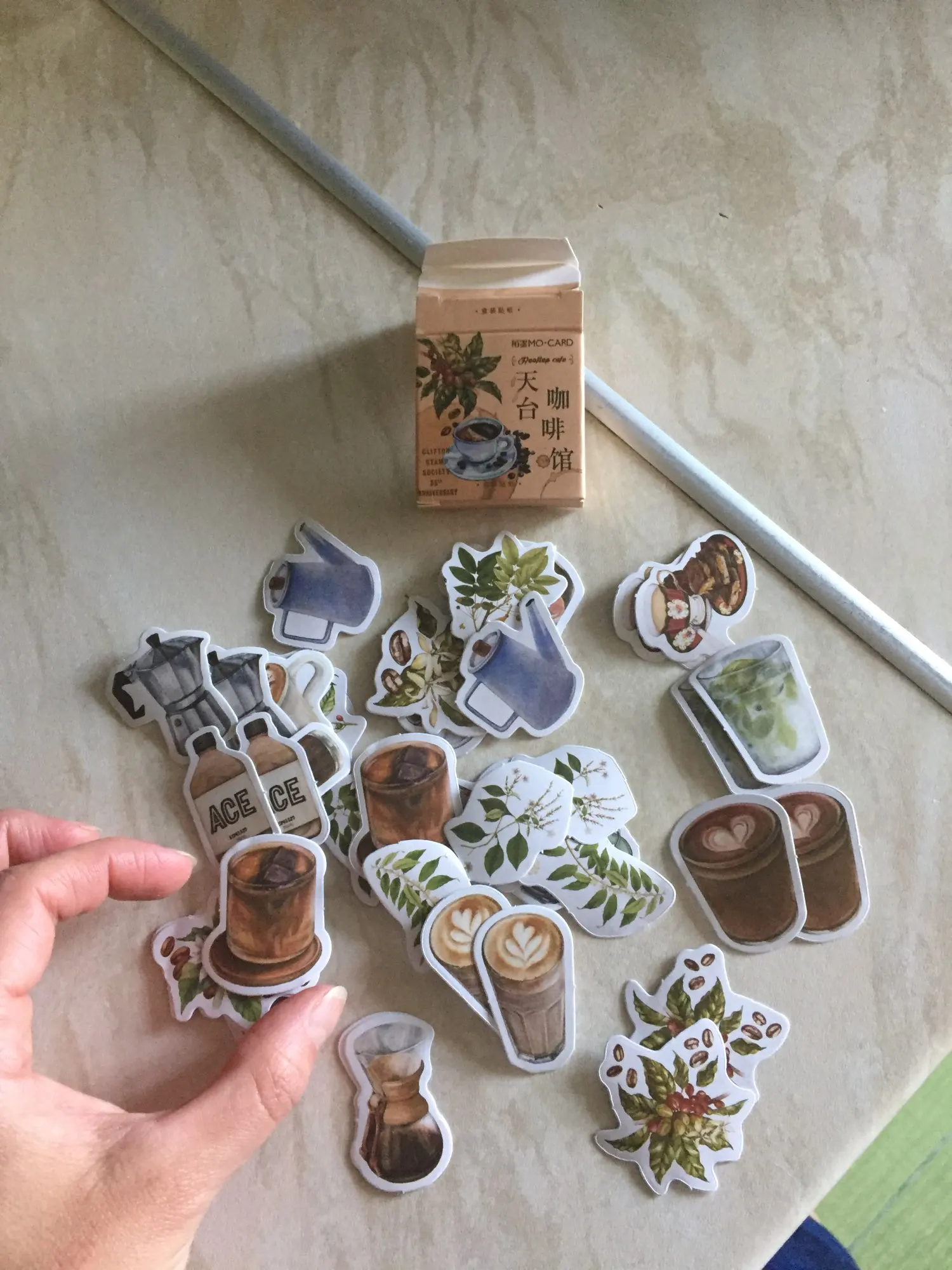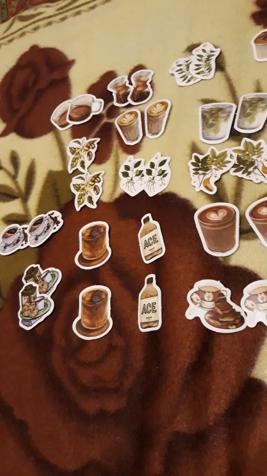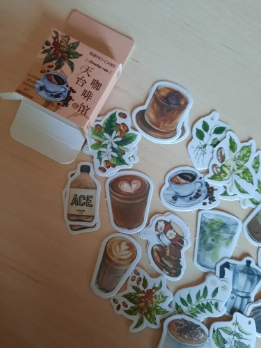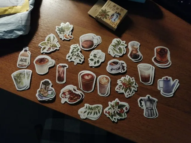 Отличные наклейки! Набор приходит в маленькой картонной коробочке, внутри 23 разных изображений (по 2 наклейки на каждое). Размер всех наклеек до 4 см × 4 см. Выглядят как на фото, качество печати хорошее, плотные, клеятся хорошо и на бумагу и на поверхности вроде крышки ноутбука.