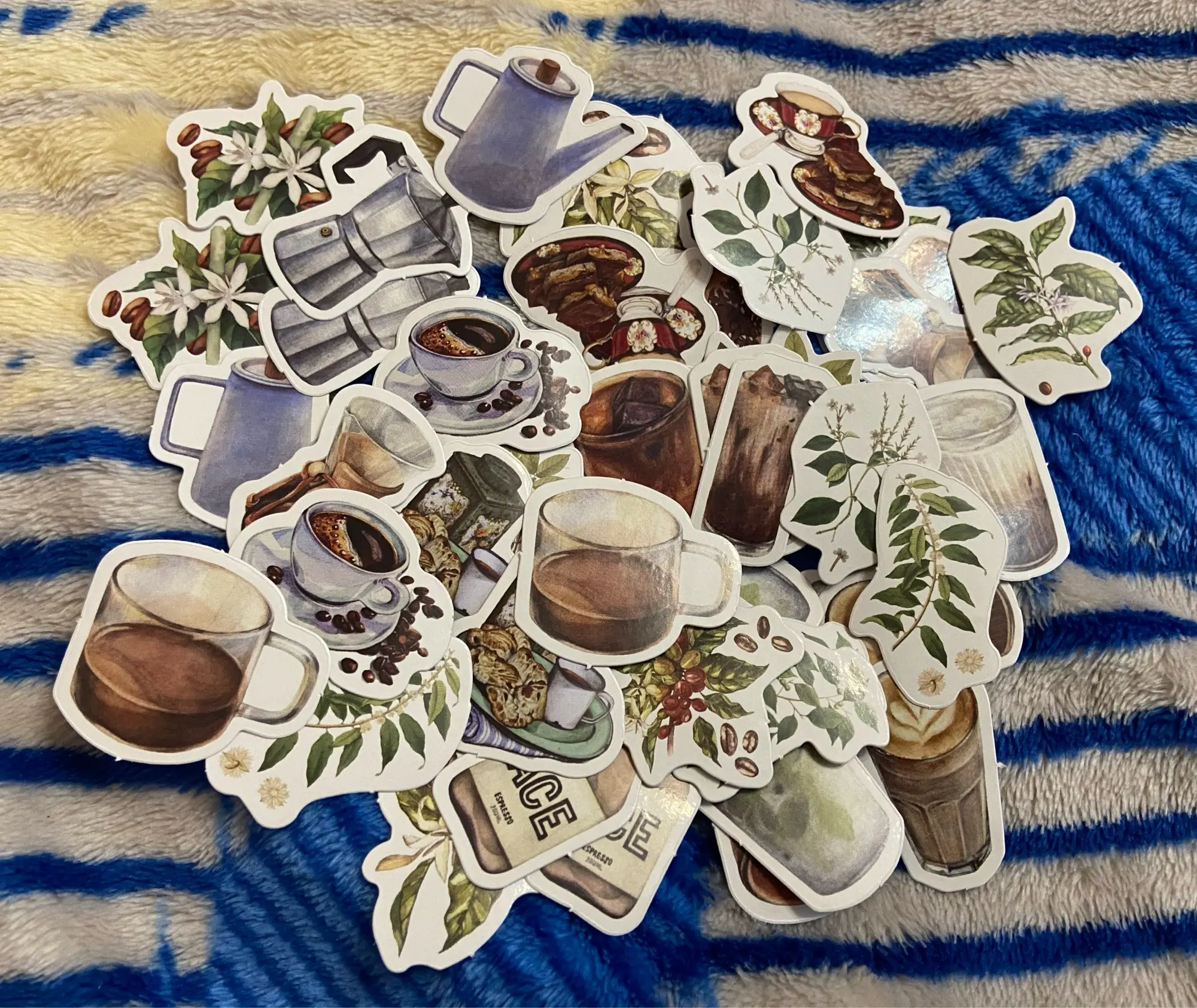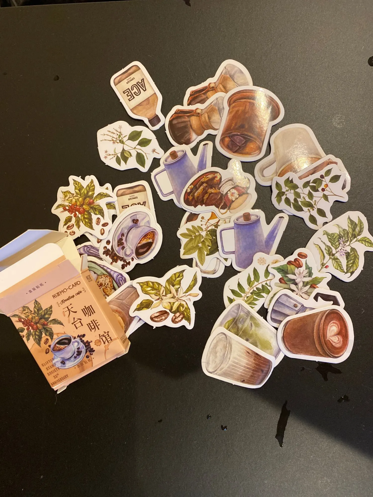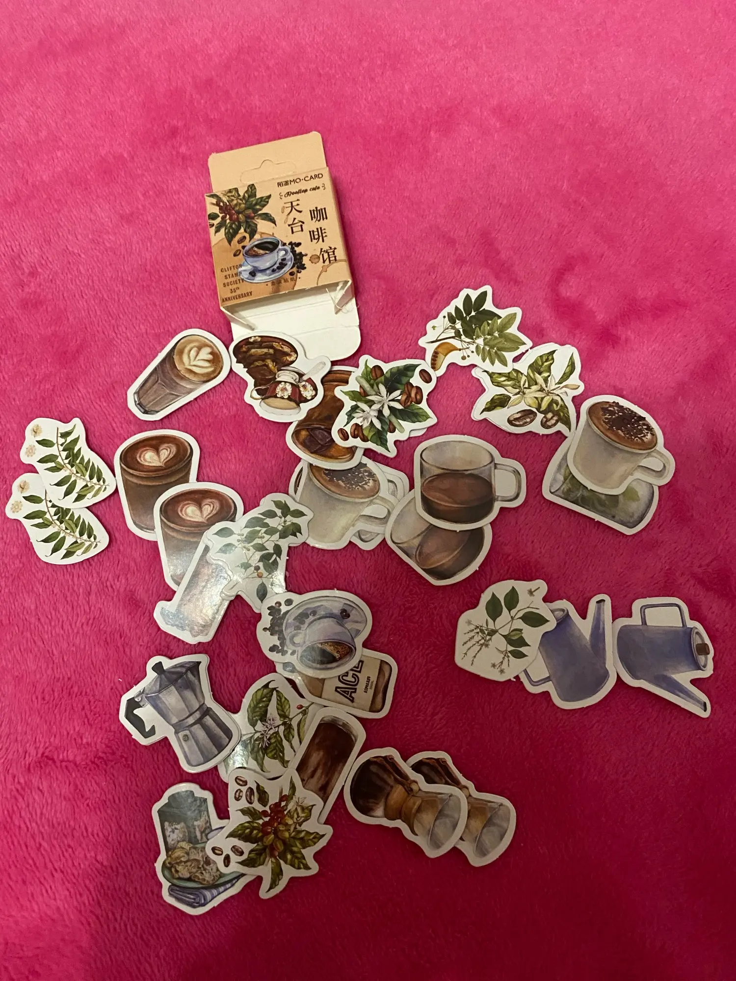 Отличные наклейки! Набор приходит в маленькой картонной коробочке, внутри 23 разных изображений (по 2 наклейки на каждое). Размер всех наклеек до 4 см × 4 см. Выглядят как на фото, качество печати хорошее, плотные, клеятся хорошо и на бумагу и на поверхности вроде крышки ноутбука.