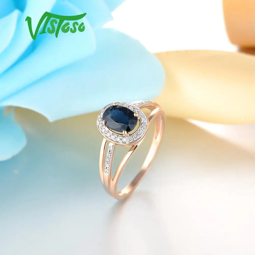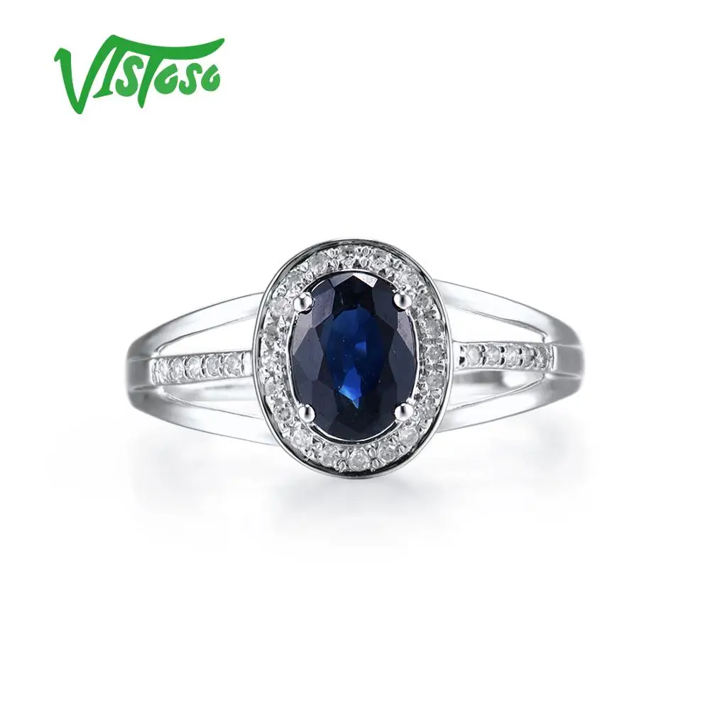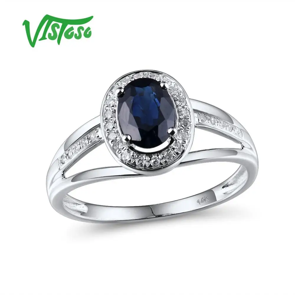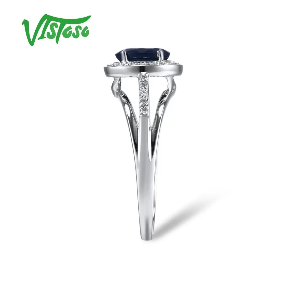VISTOSO 14 K кольца из белого золота для женщин подлинные сверкающие бриллианты Необычные синие сапфировые обручальные юбилей уникальные ювелирные изделия