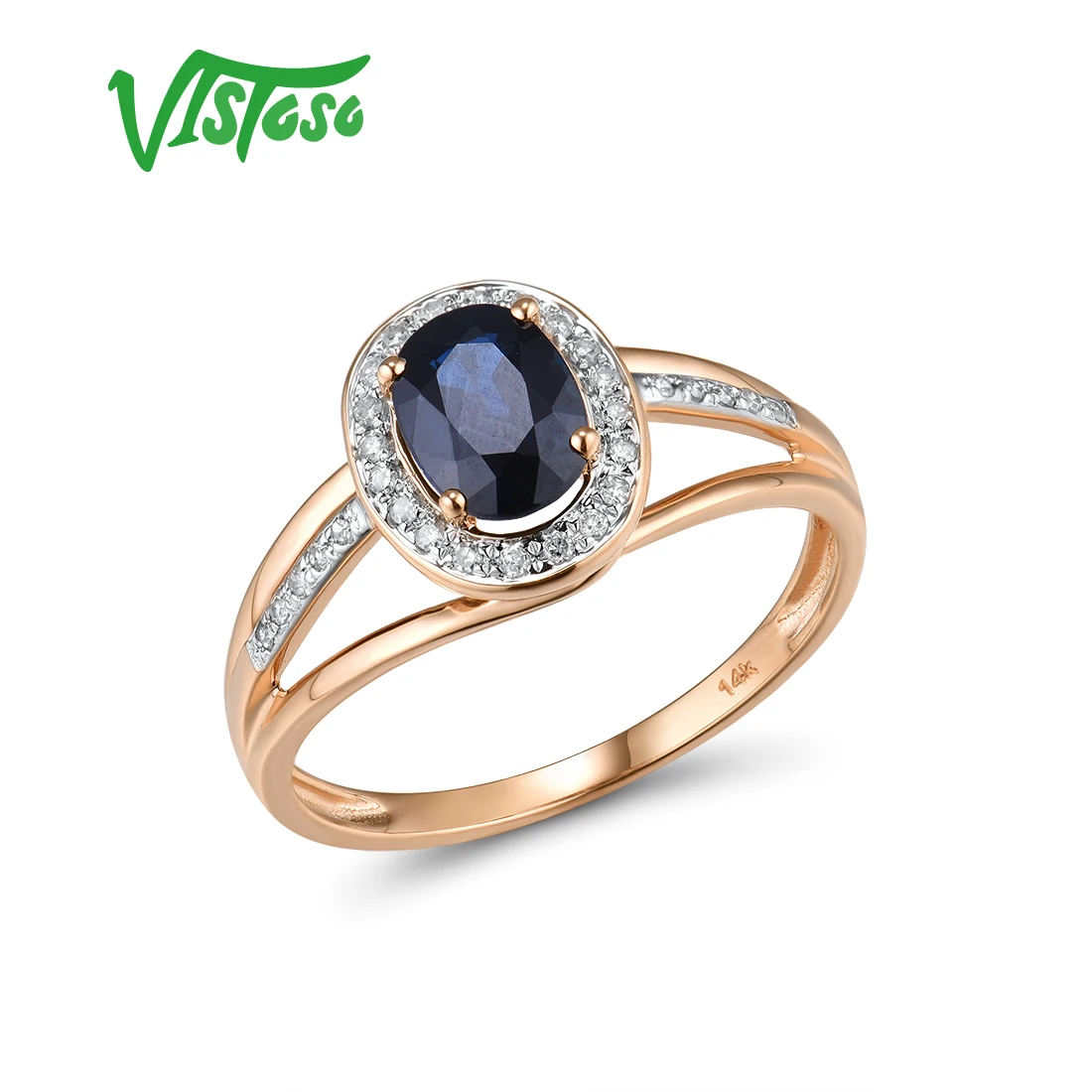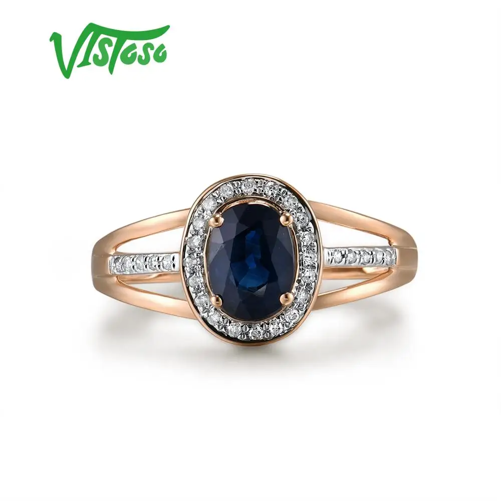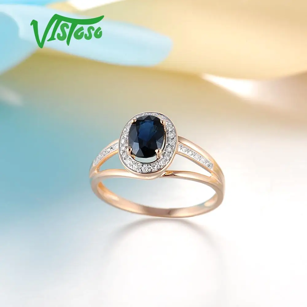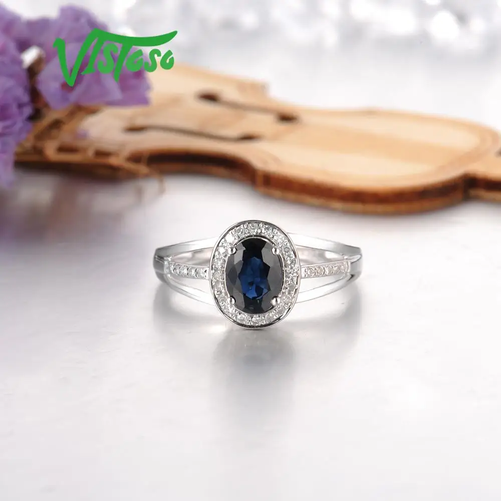 VISTOSO 14 K кольца из белого золота для женщин подлинные сверкающие бриллианты Необычные синие сапфировые обручальные юбилей уникальные ювелирные изделия