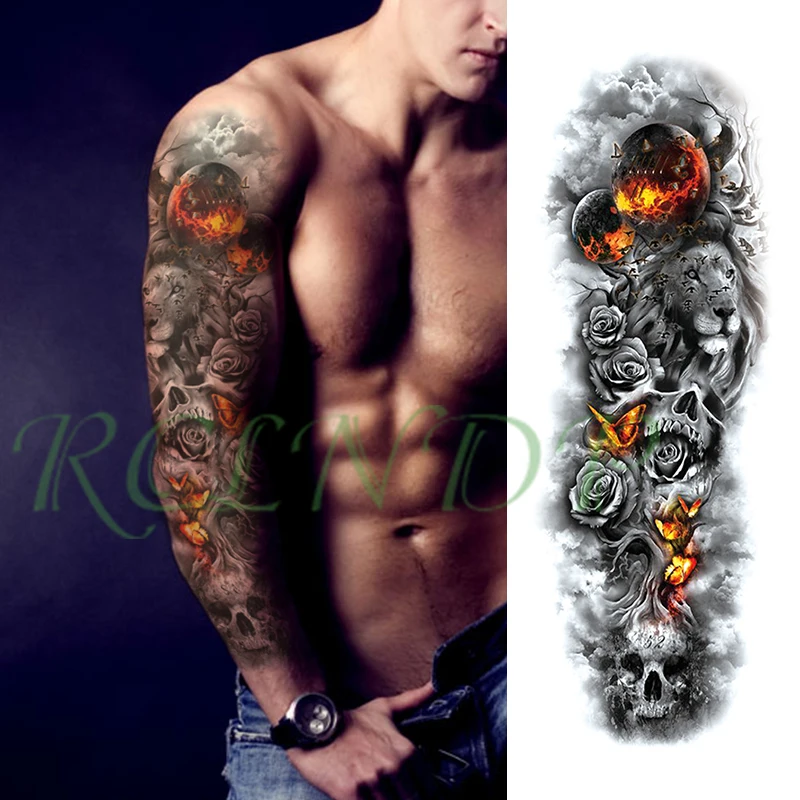 Водонепроницаемая Временная тату-наклейка цветок воин Дракон башня ...