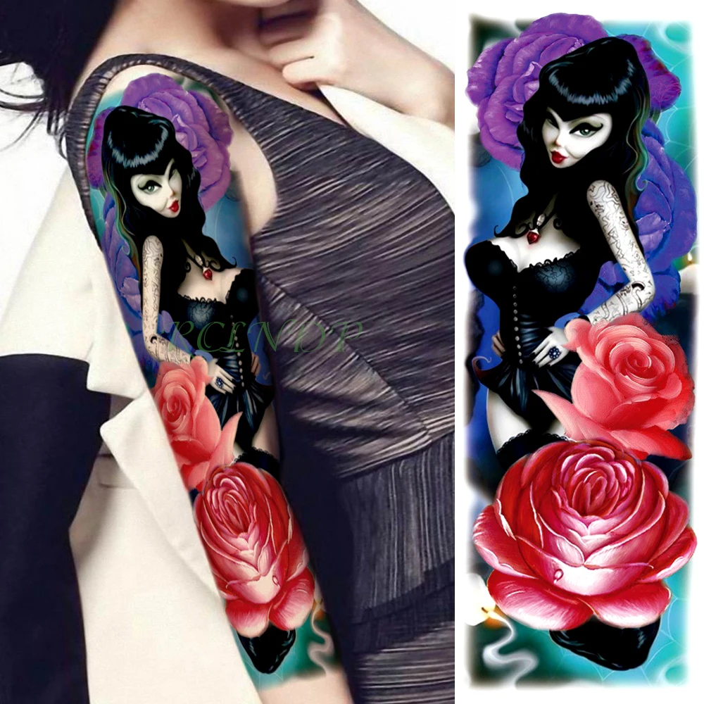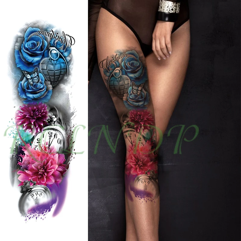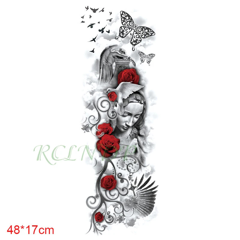 Водостойкая Временная тату-наклейка Роза Крылья Ангела птица бабочка лоза полная рука поддельные тату флэш-тату для мужчин женщин девушек