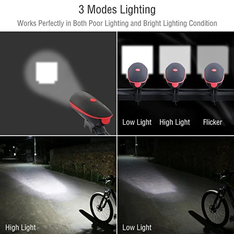 Велосипедный звонок с зарядкой через USB, многофункциональный Ультраяркий Электрический громкий сигнал, фонарь на голову