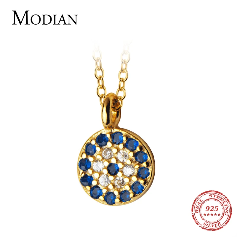 Женское Ожерелье Modian из стерлингового серебра 925 пробы с голубыми кристаллами
