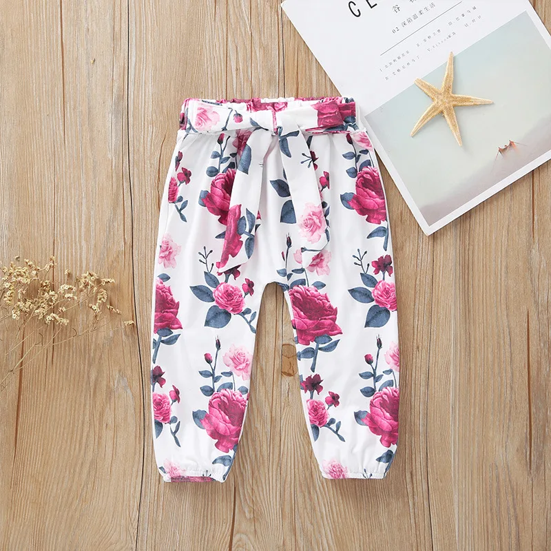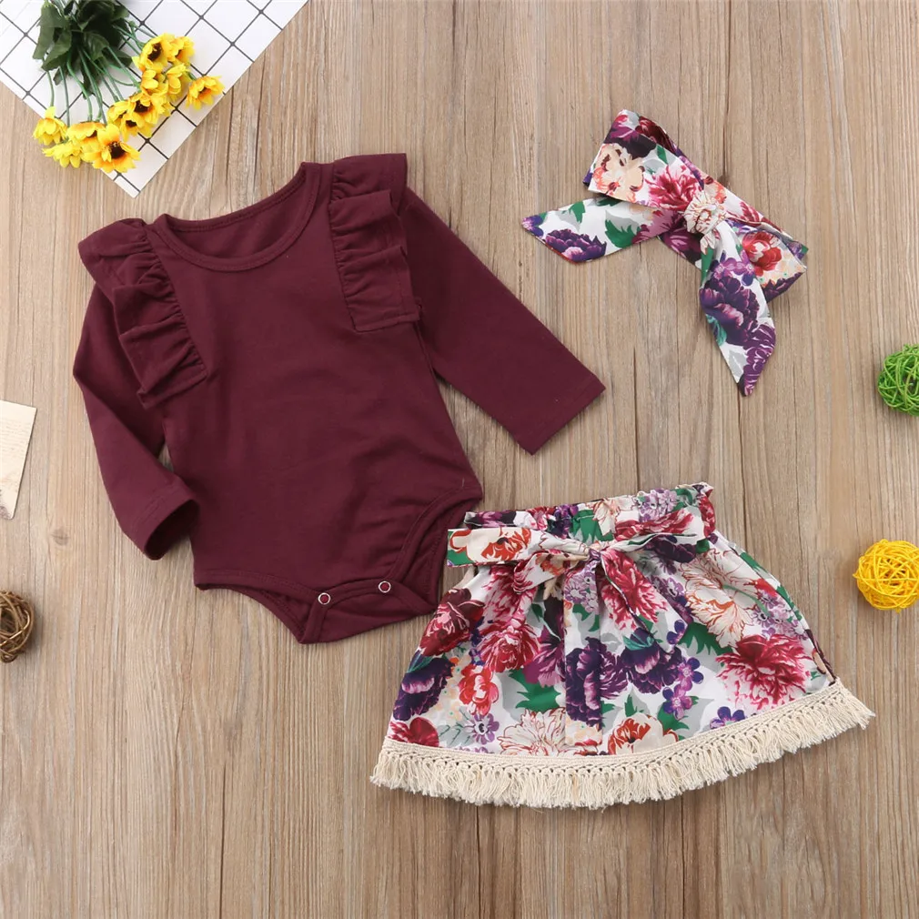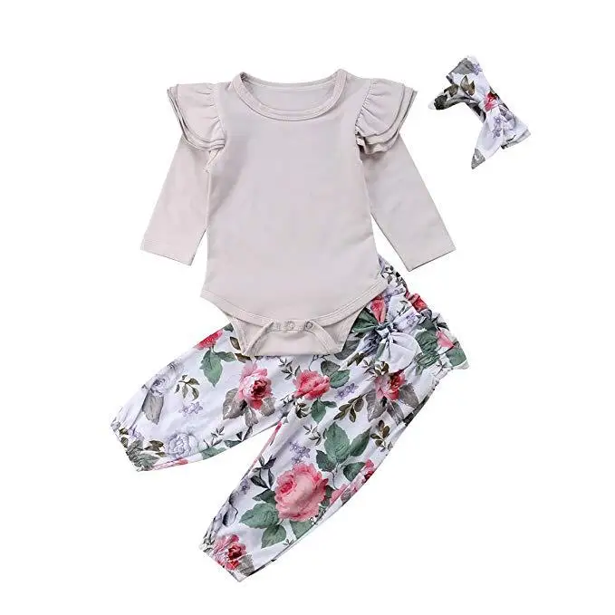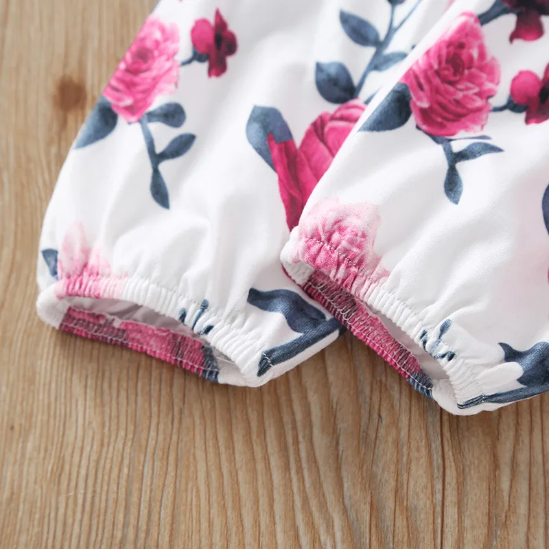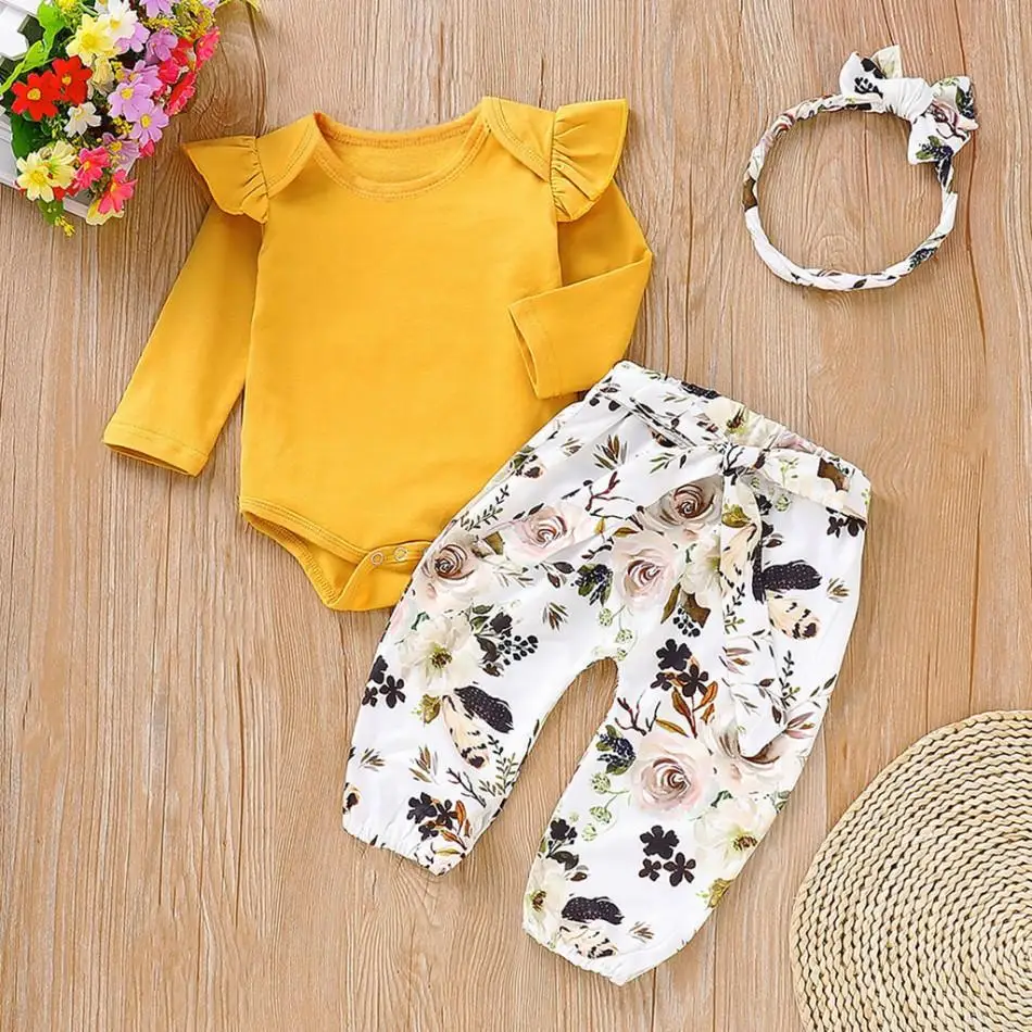 Комплект осенней одежды Humor Bear для маленьких девочек, 2022, хлопковая футболка с длинным рукавом + штаны с цветами + повязка на голову, 3 шт., комбинезоны, костюм для малышей