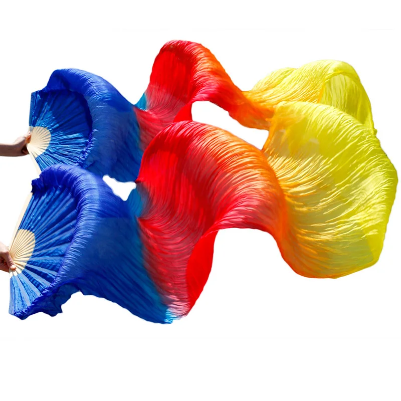 Веер для танца живота из 100% натурального шелка/искусственного шелка, китайский веер из высококачественного шелка, вуаль для танца живота ручной работы, окрашенная Шелковый веер для танца