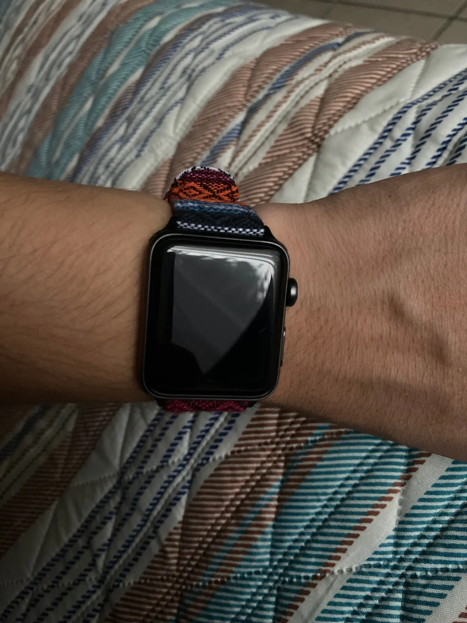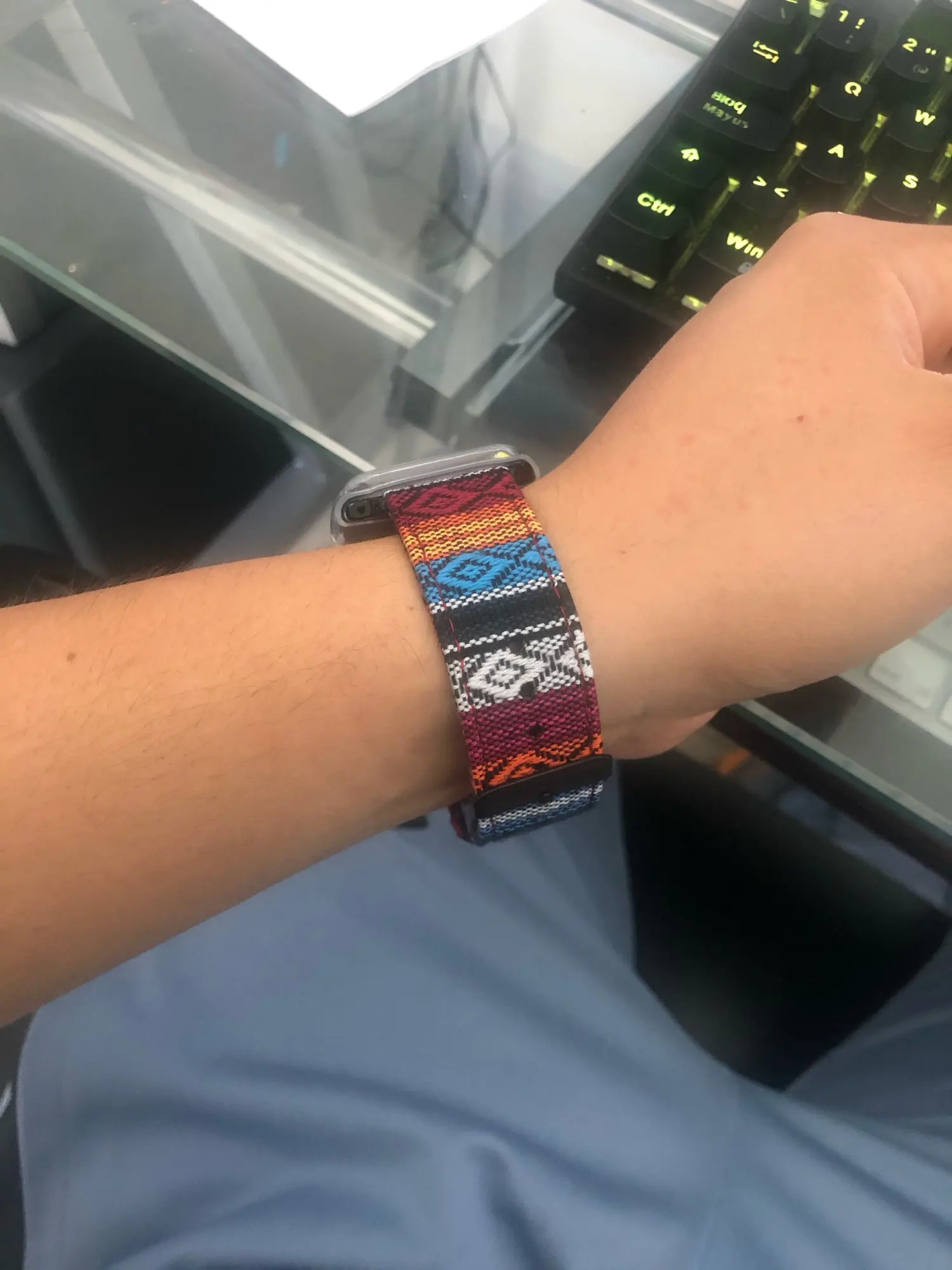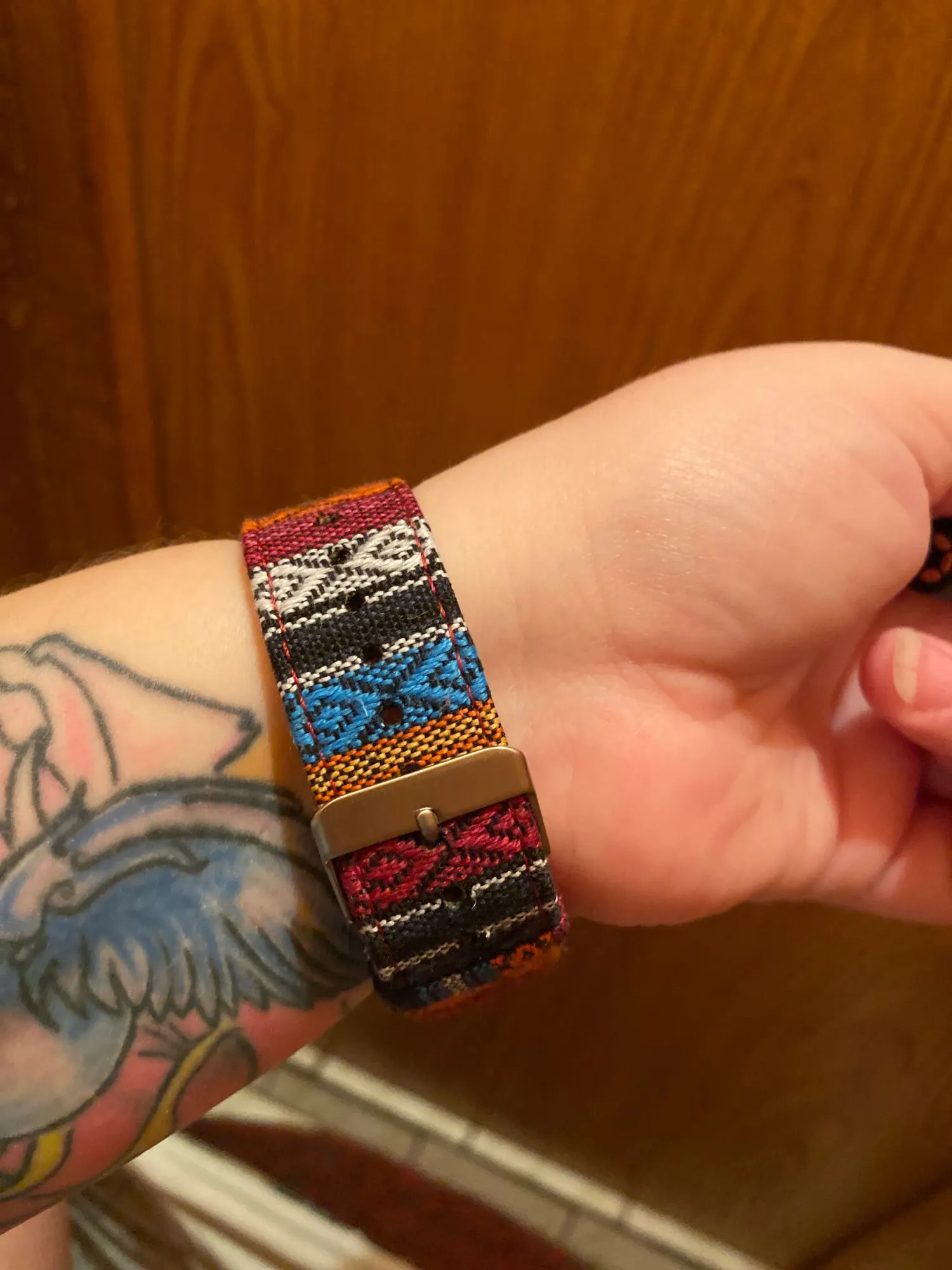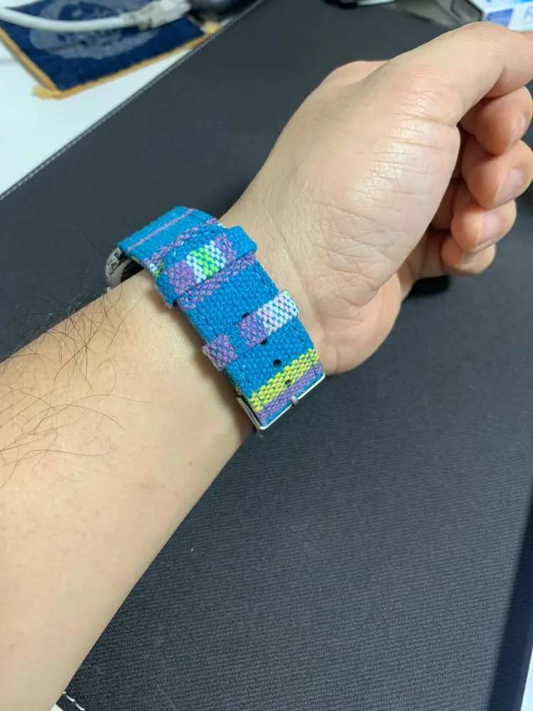 Хороший ремешок. Пока новый жесткий, немного помял его, стал лучше сидеть на руке. Если хотите выделиться, то однозначно рекомендую. Немного выпирает крепление с одной стороны, но не критично, бывали и похуже крепления на ремешках. Сам скорее всего закажу ещё и другую расцветку.