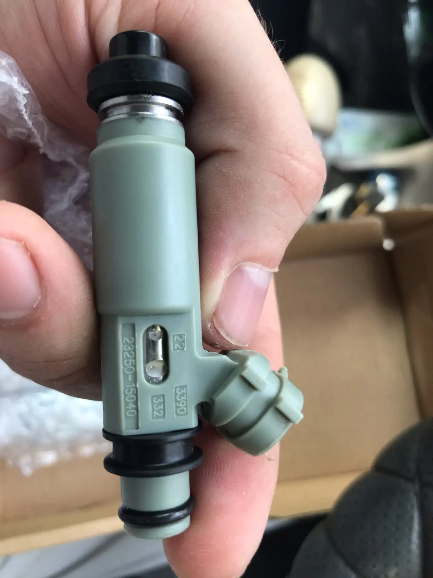 Поставил форсунки на Тойота Королла мотор 4А-FE, причина замены была проста, плохой запуск на теплый мотор, на холодную заводилась нормально, форсунки восстановленные, сверху форсунки где установлены сеточки в самих форсунках отверстия на оригинале круглые(первое фото и предпоследний), а на этих 2х форсунках почти круглые, а 2х овальные(второе и последнее). Резинки уплотнительные купил другие, которые шли с форсунками показались жесковаты. Вроде работают, буду надеется что прослужат долгое. Брать или нет решайте сами). Трек отслеживался.