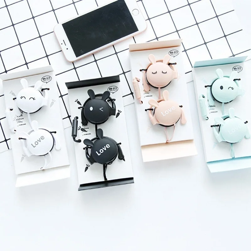 Наушники-вкладыши с милым Кроликом, стереонаушники с микрофоном 3,5...