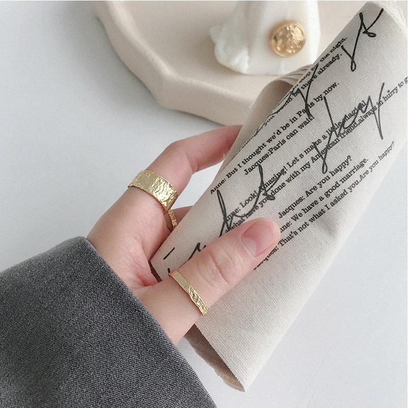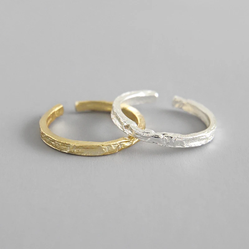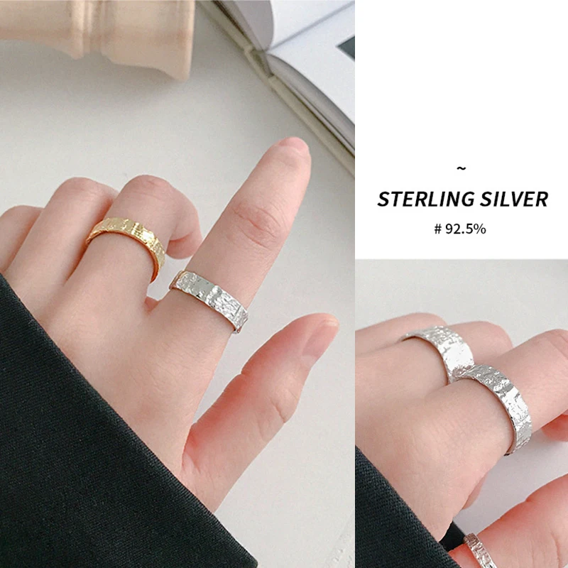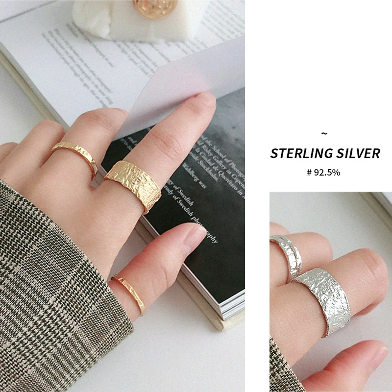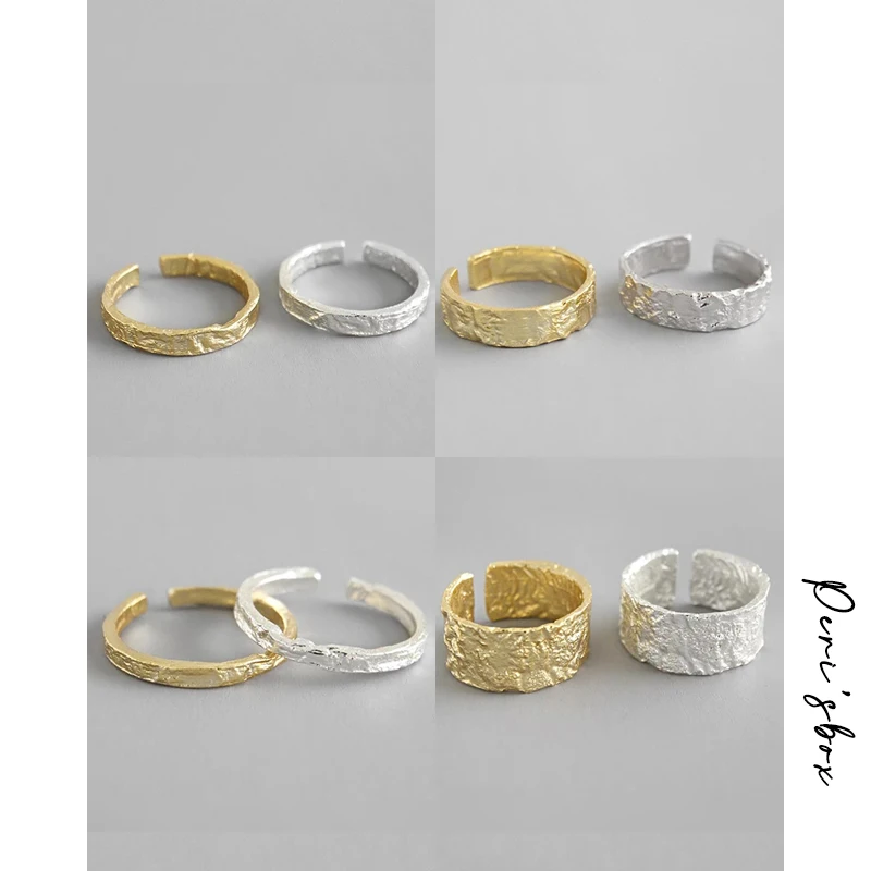 Женское кольцо Peri'sBox, широкое и тонкое кольцо с текстурой оловянной фольги из 925 пробы серебра, кольца оригинальной формы, регулируемый размер