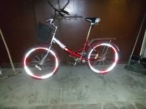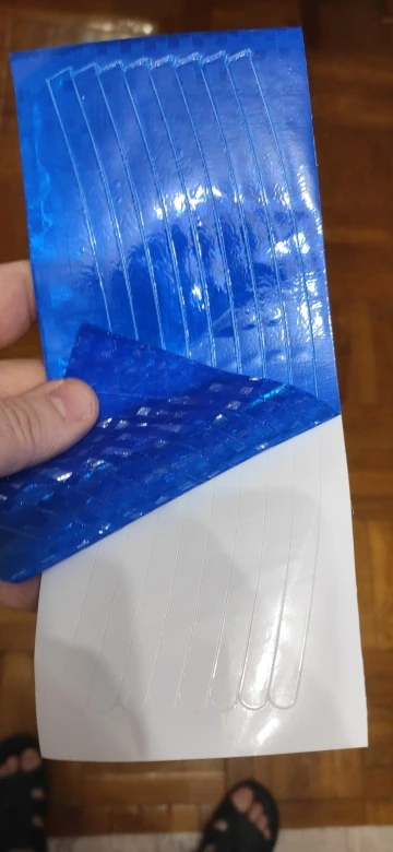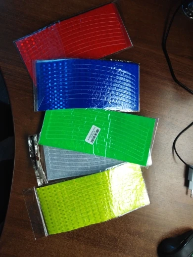 Клеить пока не стал, так как у нас сезон дождей и не хочется, чтобы за неделю полоски отвалились (хотя была бы боевая настоящая проверка). Свет отражает очень хорошо, на улице точно велик будет заметен и в солнечную погоду и в свете фар машин. Надеюсь приклеятся качественно. Ну а если нет, то руки у меня растут откуда надо, что-нибудь придумаю. Продавцу спасибо!