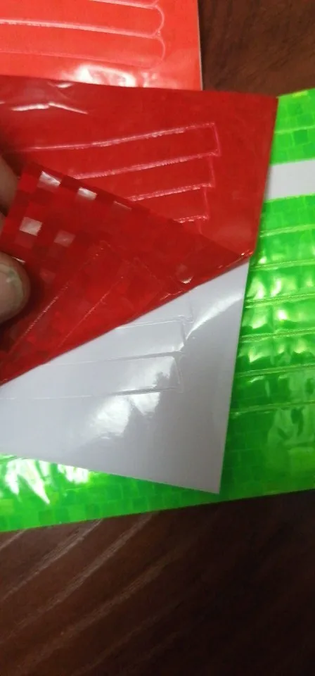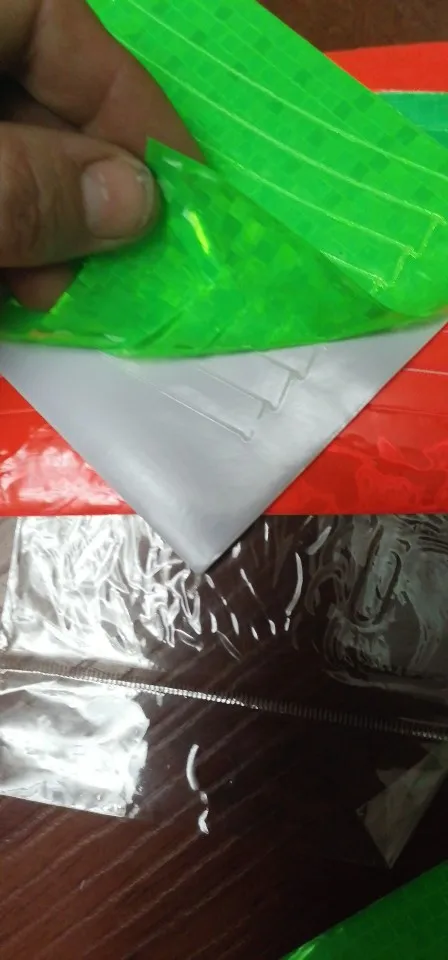 Светоотражение норм. Крепление отражающего слоя к клеевому осуществлено посредством расплавления собсно отражающей пленки и только по контуру. Поэтому соединение крайне ненадёжное. Почему нельзя было нанести клеевой слой непосредственно на плёнку, а не на бумагу - непонятно. Снег сойдёт посмотрим на сколько хватит.