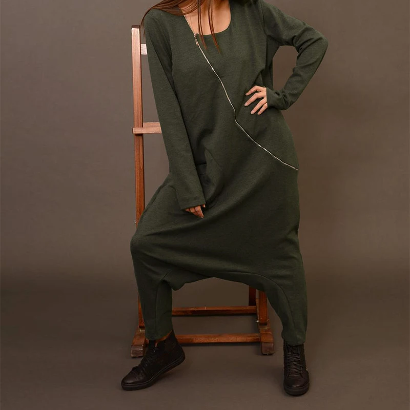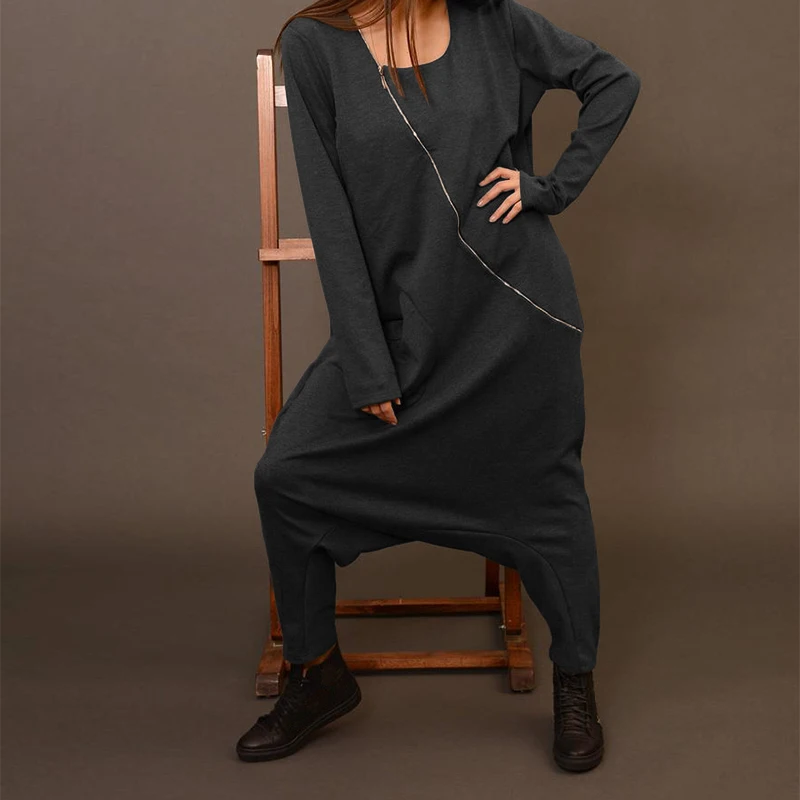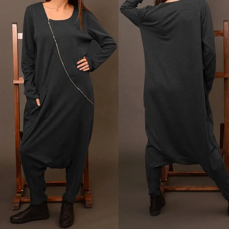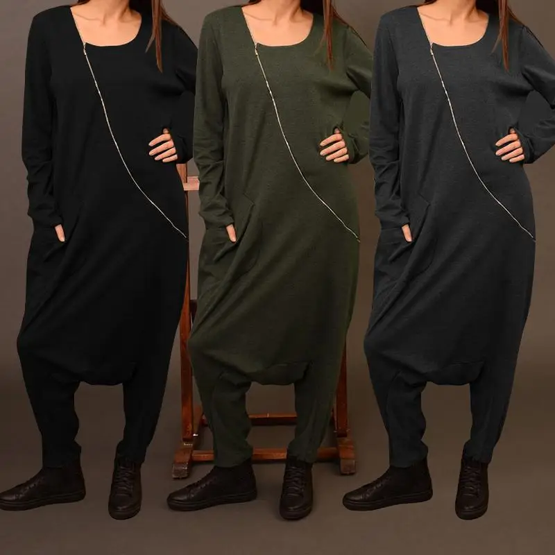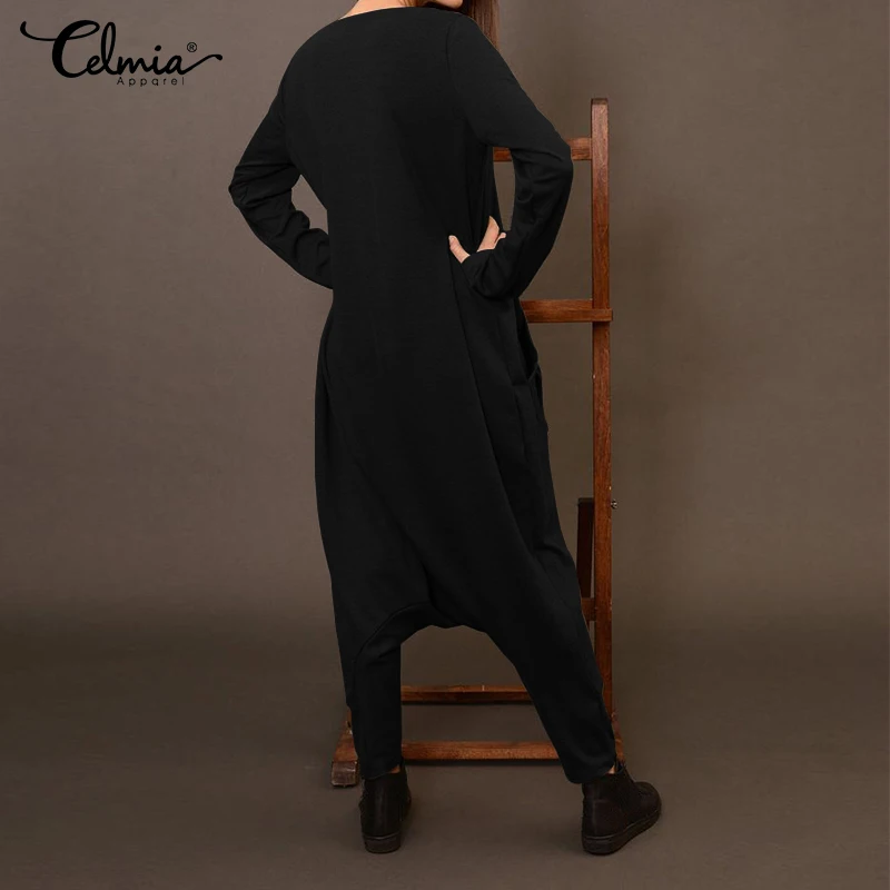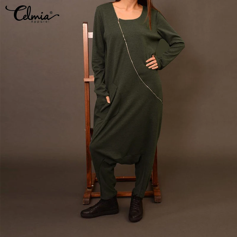 2021 Celmia комбинезоны для женщин с длинным рукавом с заниженным шаговым швом, штаны-шаровары, широкие штаны, свободные комбинезон на молнии повседневные однотонные штаны с карманами комбинезоны S-5XL