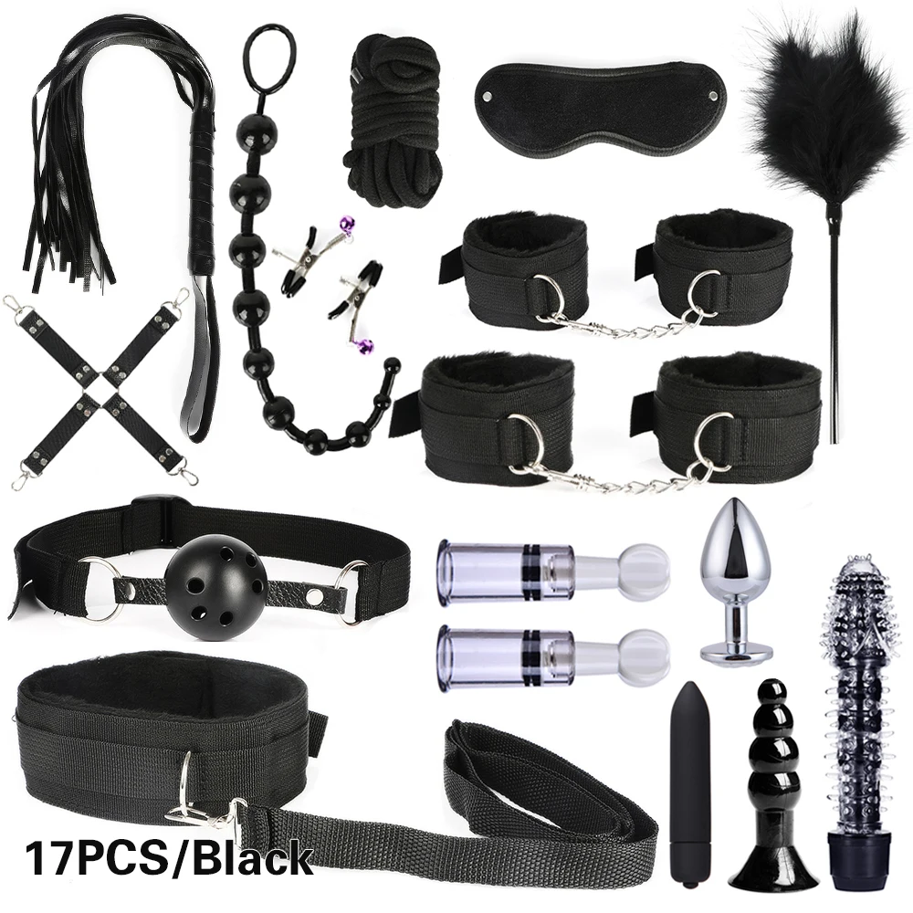 Наборы секс-игрушек для взрослых BOMBOMDA 10, 13, 15 и 17 шт., наручники, кнут, анальная пробка, вибратор, и другие предметы