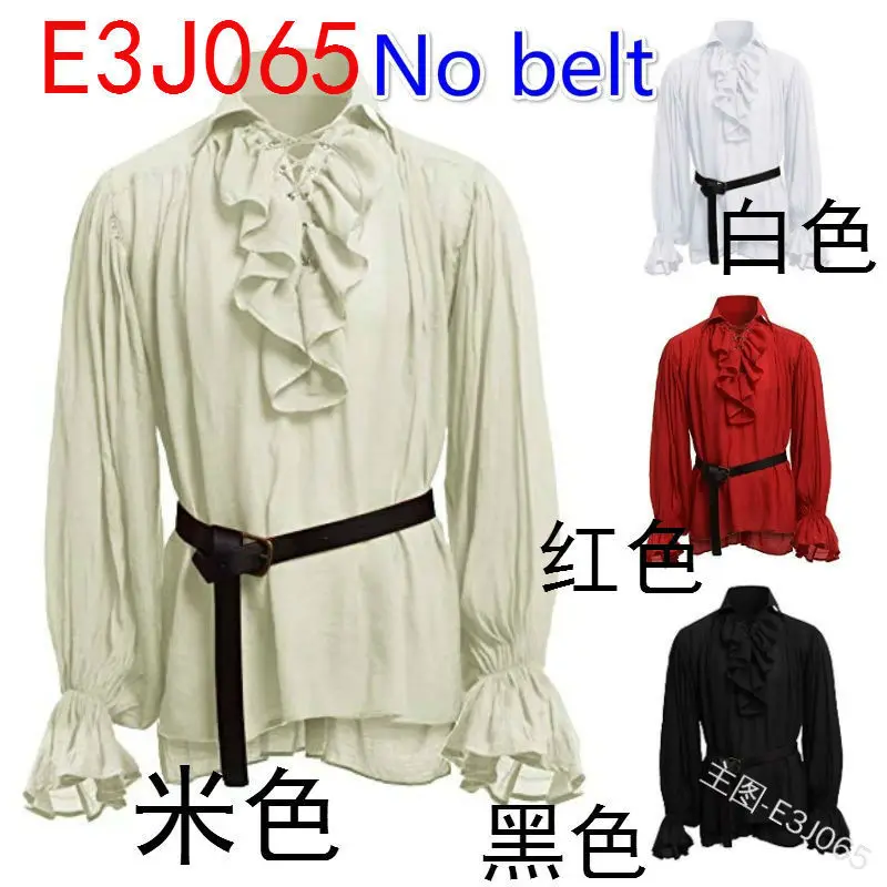 Мужская рубашка вампира, белая или черная рубашка с ремнем в стиле ...