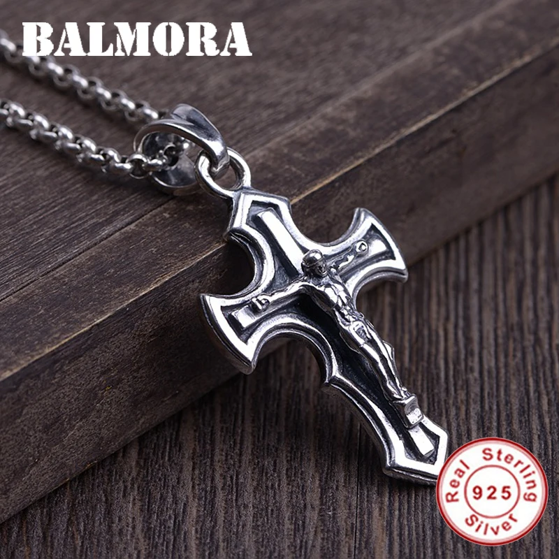 BALMORA 925 серебро крест религиозная подвеска для мужчин Мода Панк Стиль христианские ювелирные аксессуары без цепи