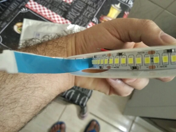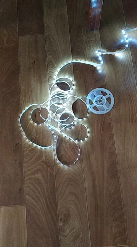 Посылка была получена в течение 20 дней. Он был упакован в пузырчатый пакет и пришел в хорошем состоянии. Описание светодиодной ленты верное и качество очень хорошее. Я не уверен, насколько прочна клейкая лента, которая не маркируется как 3м. Последние две фотографии сделаны с фиксированными настройками камеры, чтобы увидеть разницу для выключения и включения светодиодов. Яркость выглядит как 70 Вт старый стиль лампы как светодиоды теплый белый. Рекомендуется!