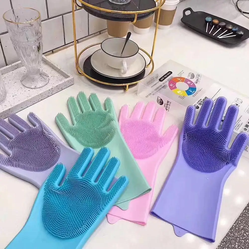 1 пара силиконовых волшебных резиновых перчаток экологически чистые чистящие губки щетки для мытья посуды хозяйственные перчатки для уборки