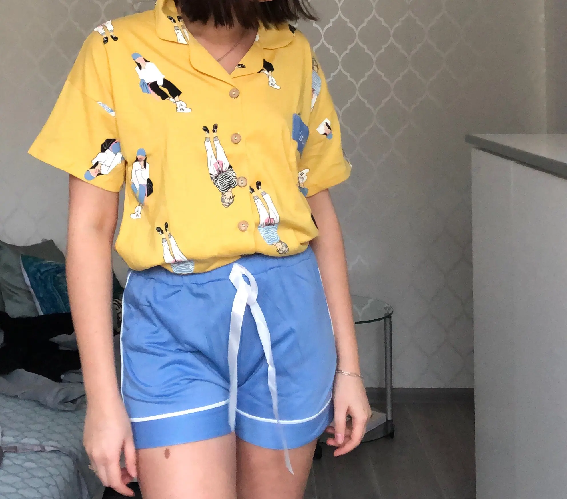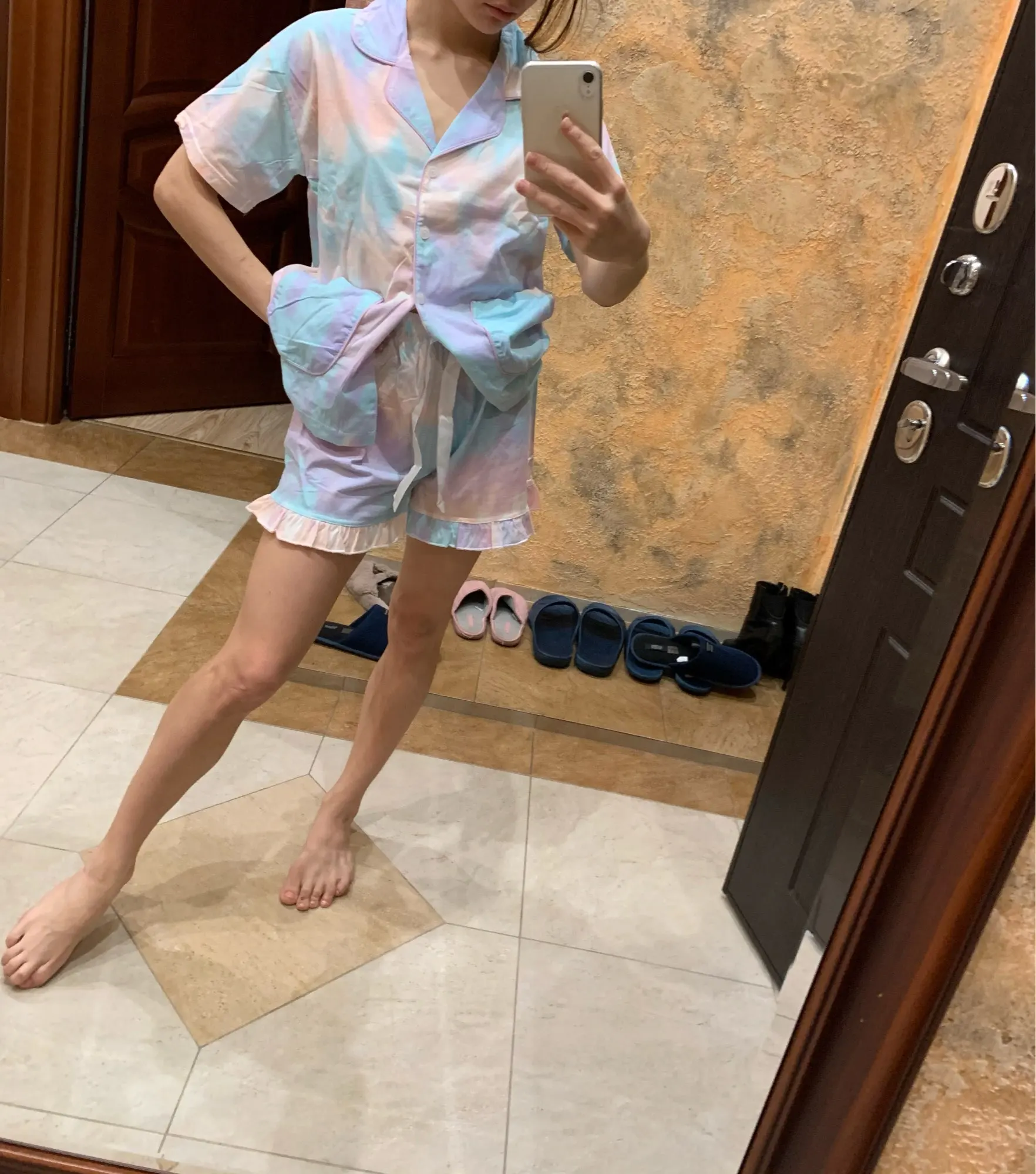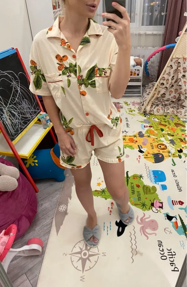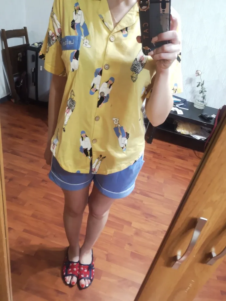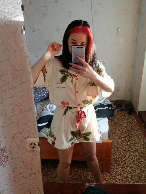 Очень мягкая пижама! Пришло за месяц до Екатеринбурга! Думала, что шорты будут чуть длиннее, но это не страшно. Довольна заказом! На свой размер s-m , взяла XL, рубашка села очень хорошо, а шорты обтягивают!