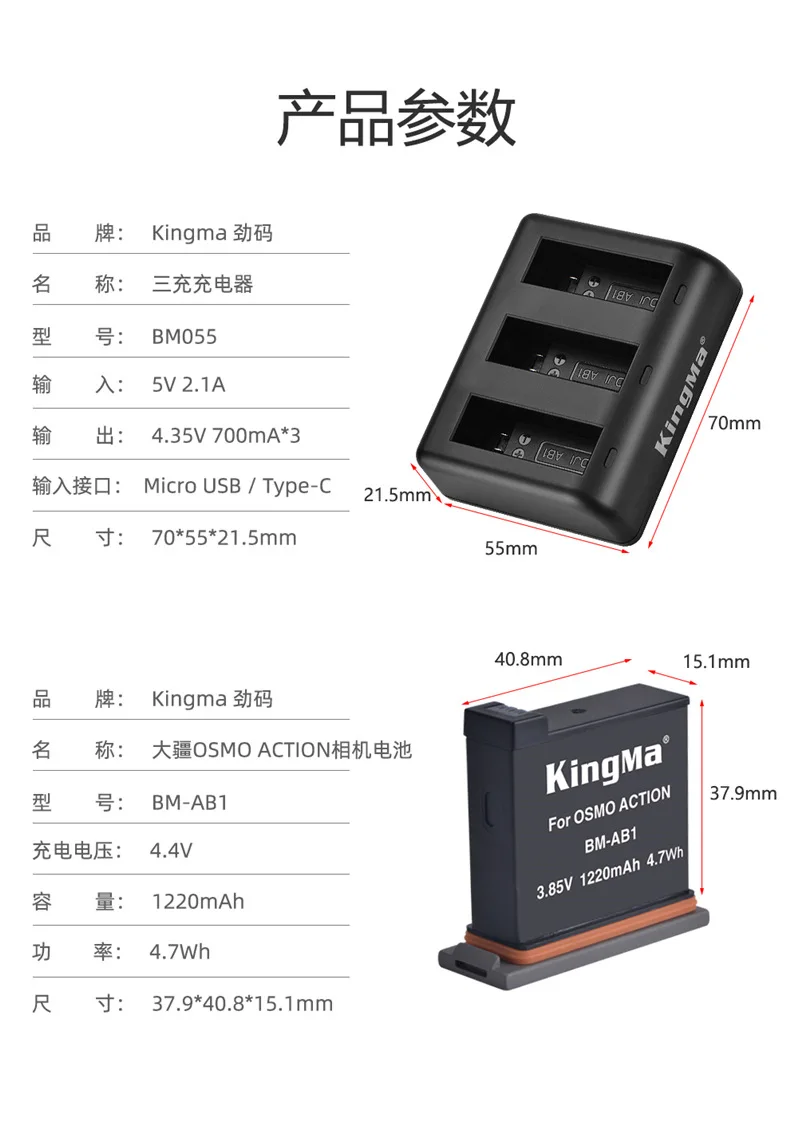 Литиевый аккумулятор для DJI OSMO Action3-стороннее зарядное устрой...