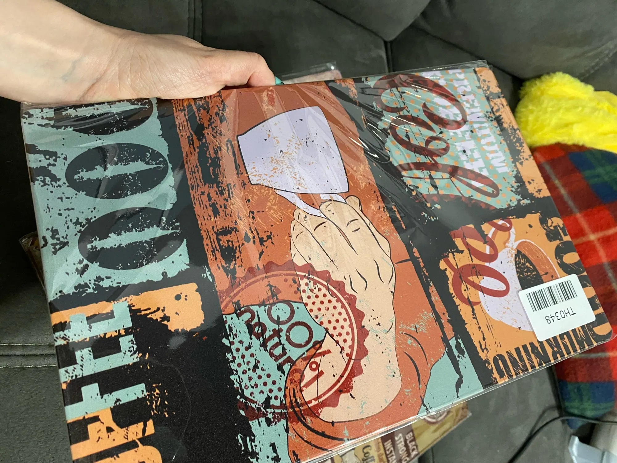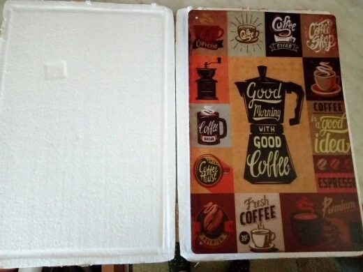 доставка быстрая, упаковано все достойно. приехало все целое. покупкой довольна. тонкий лист метала с нанесением рисунка с эффектом ржавчины/старины. есть отверстия для шурупов/гвоздей.нет ни единого косяка. все как на картинках у продавца. я рада. спасибо
