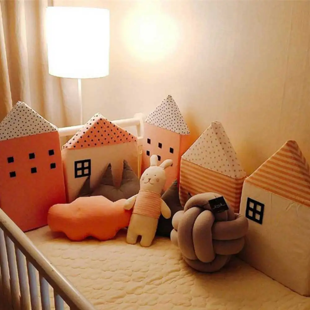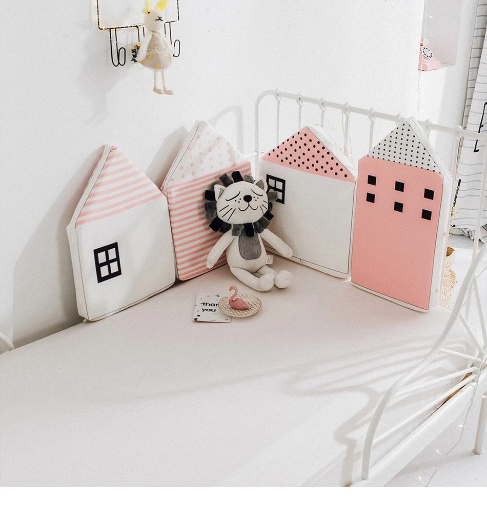 Бампер для детской кровати, 4 шт., с рисунком маленького дома, защи...