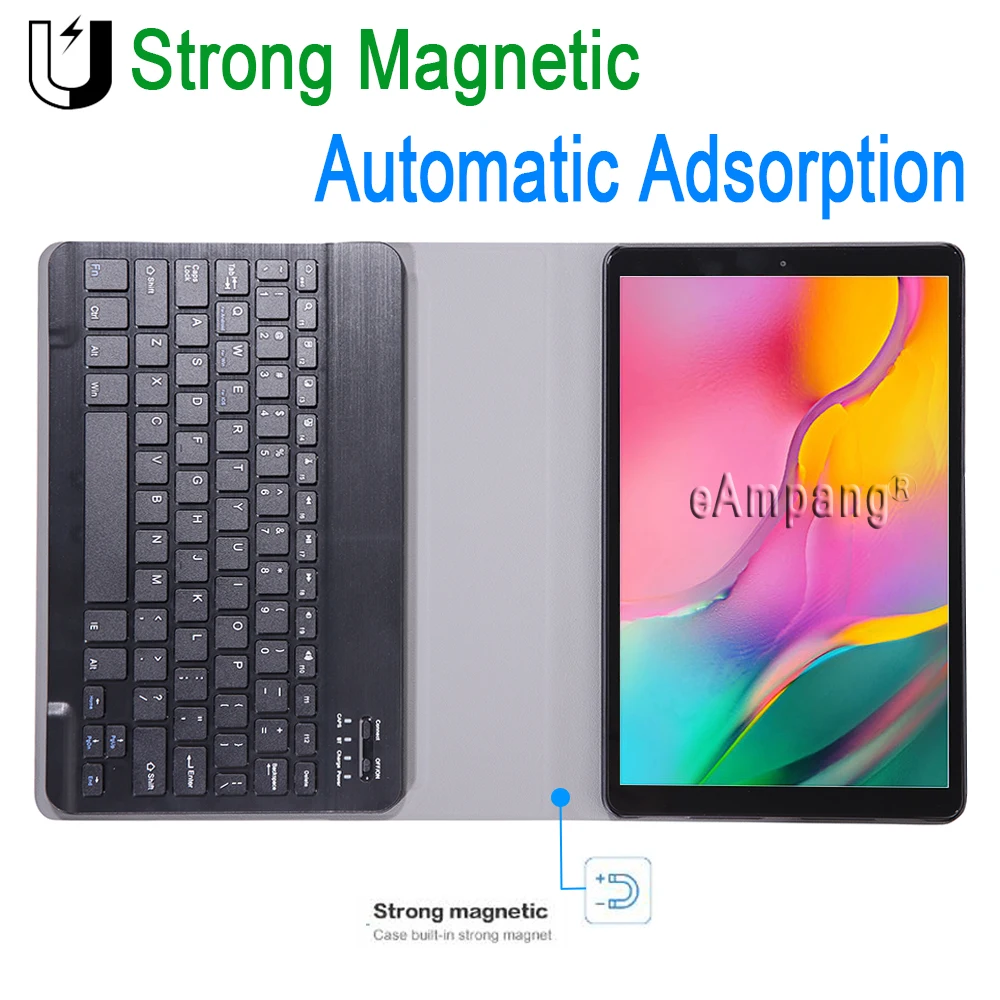 Чехол с клавиатурой для Samsung Tab A 8,0 2019, кожаный чехол с клавиатурой T290 T295, английский, русский, испанский, чехол с клавиатурой