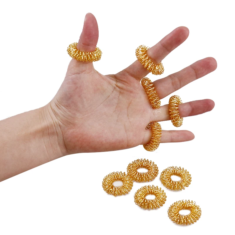 Кольцо Акупрессура-это маленькое металлическое кольцо, изготовленное из маленьких треугольных точек, которые стимулируют пальцы. Акупрессура применяет ту же основную функцию, что и акупунктура, но не проникает в кожу. Вместо этого, он обеспечивает облегчение, надавливая на определенные точки тела и тем самым отпуская напряжение. Рекомендуется использовать кольцо, если ваши пальцы устают, ваш ум отвлекается или у вас онемение пальцев. Это отлично подходит для того, чтобы дать вам энергию, улучшить вашу концентрацию и общее здоровье.