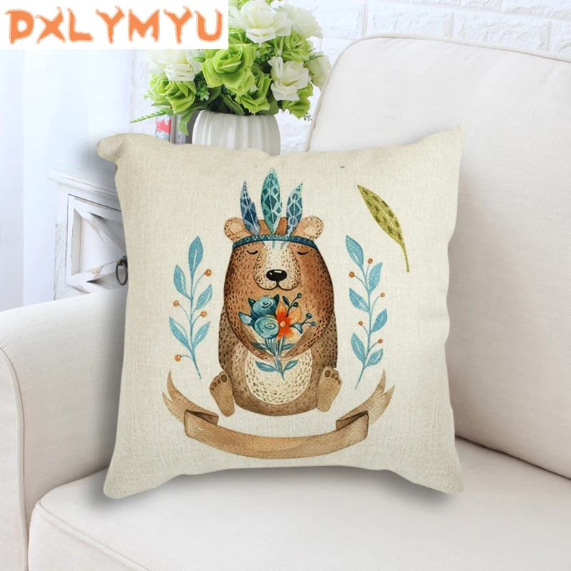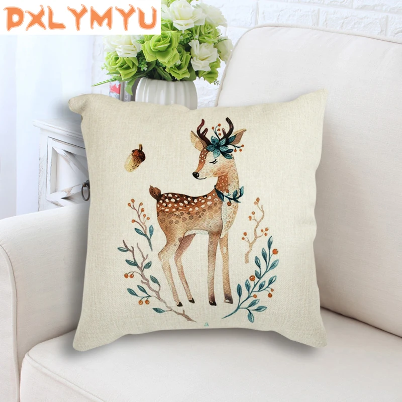 Чехол на подушку с принтом оленя, кролика, ежика, лисы, скандинавские Мультяшные животные, Чехол на подушку, декоративный Чехол на подушку, Cojines Almofadas