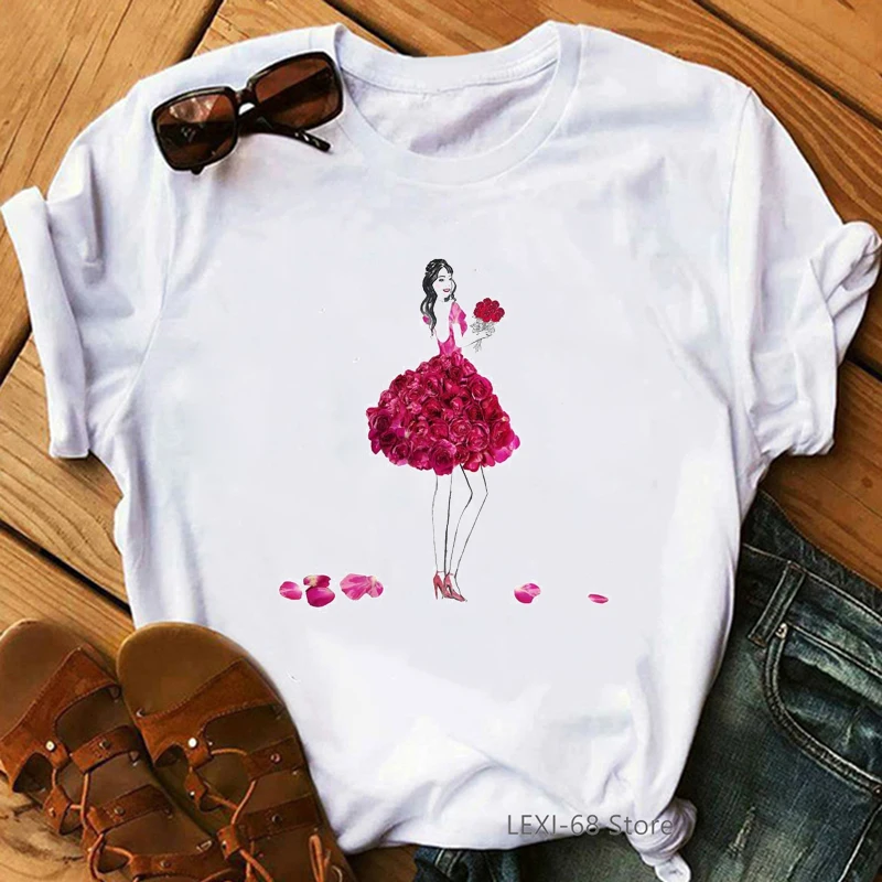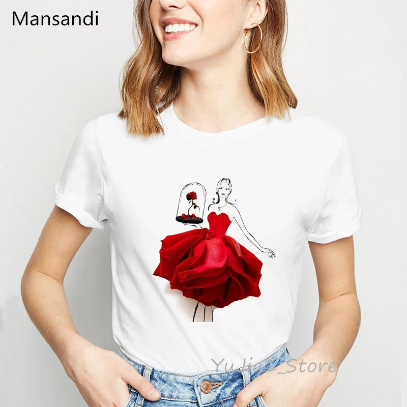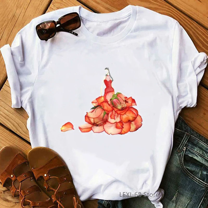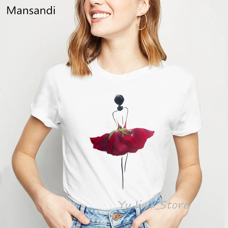 Футболка женская с принтом красных роз, с изображением цветов, 2021