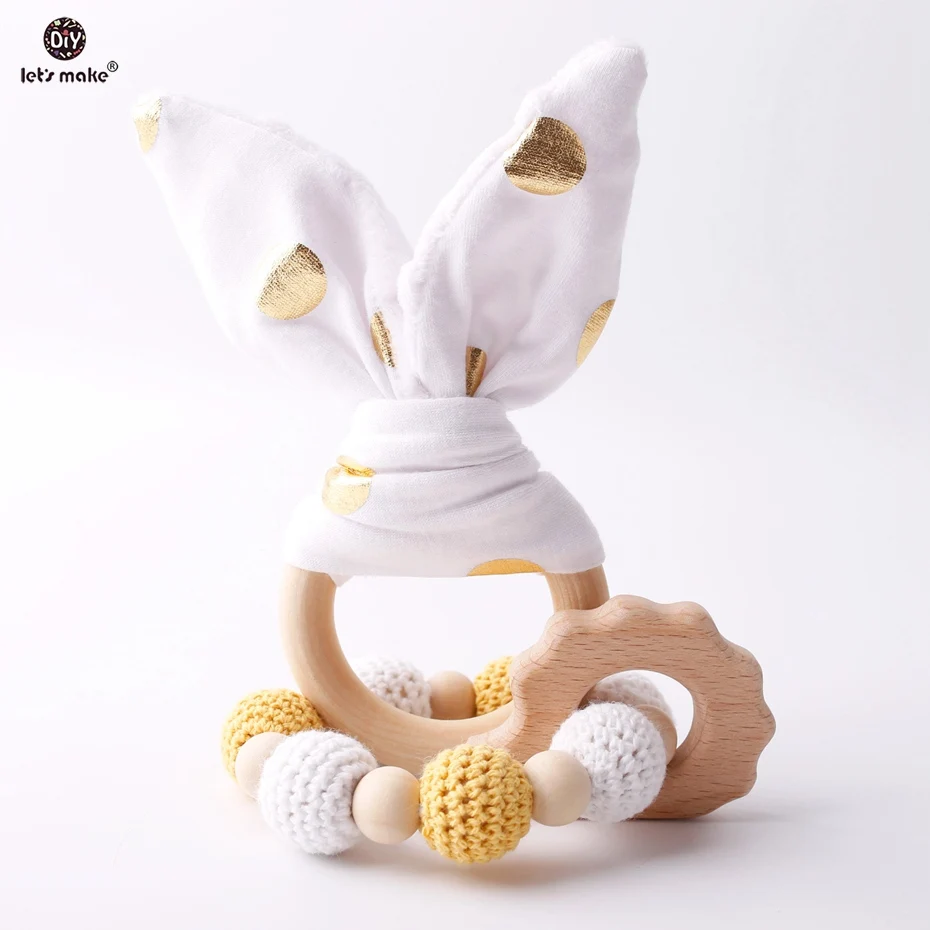 Деревянные браслеты-прорезыватели с заячьими ушками, 2 шт.1 комплект