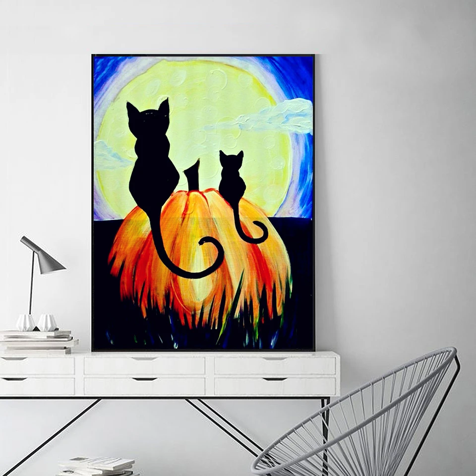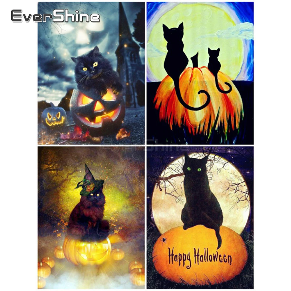 EverShine алмазная живопись кошка вышивка крестиком Алмазная вышивка картина Стразы Полный дисплей Тыква Алмазная мозаика Хэллоуин