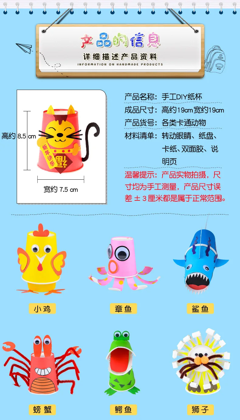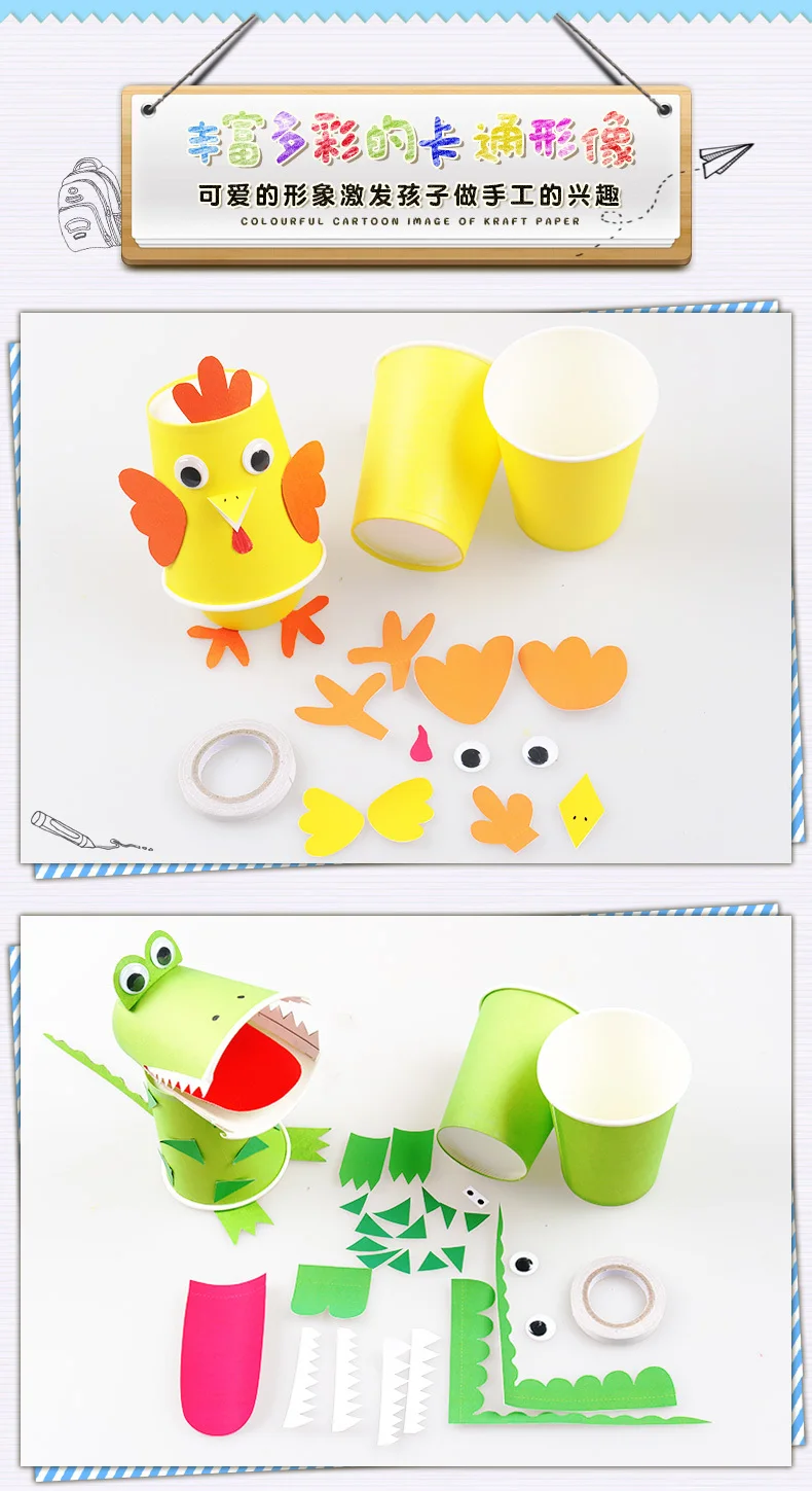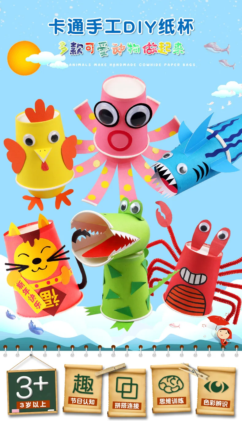 Игрушки для рисования, Детский Набор для творчества ручная работа бумажных стаканчиков, кавайные Мультяшные животные